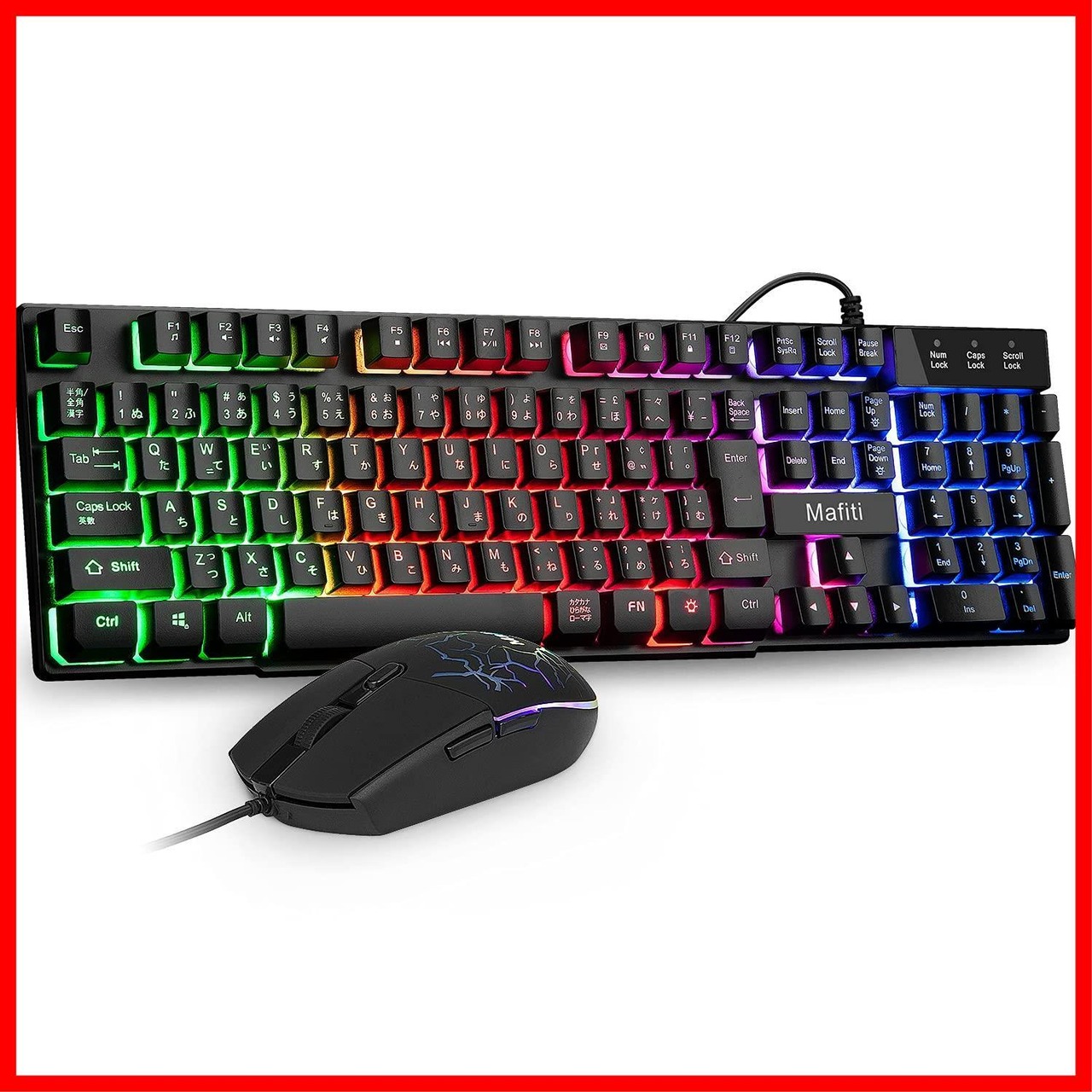 Mafiti ゲーミング キーボード マウス セット USB有線 106キー 日本語配列 19キー防衝突 4段階 ゲーミングマウス 防水 RGBバックライト Windows/VISTA/XLinux/プレステなどのシステムに対応 RK101