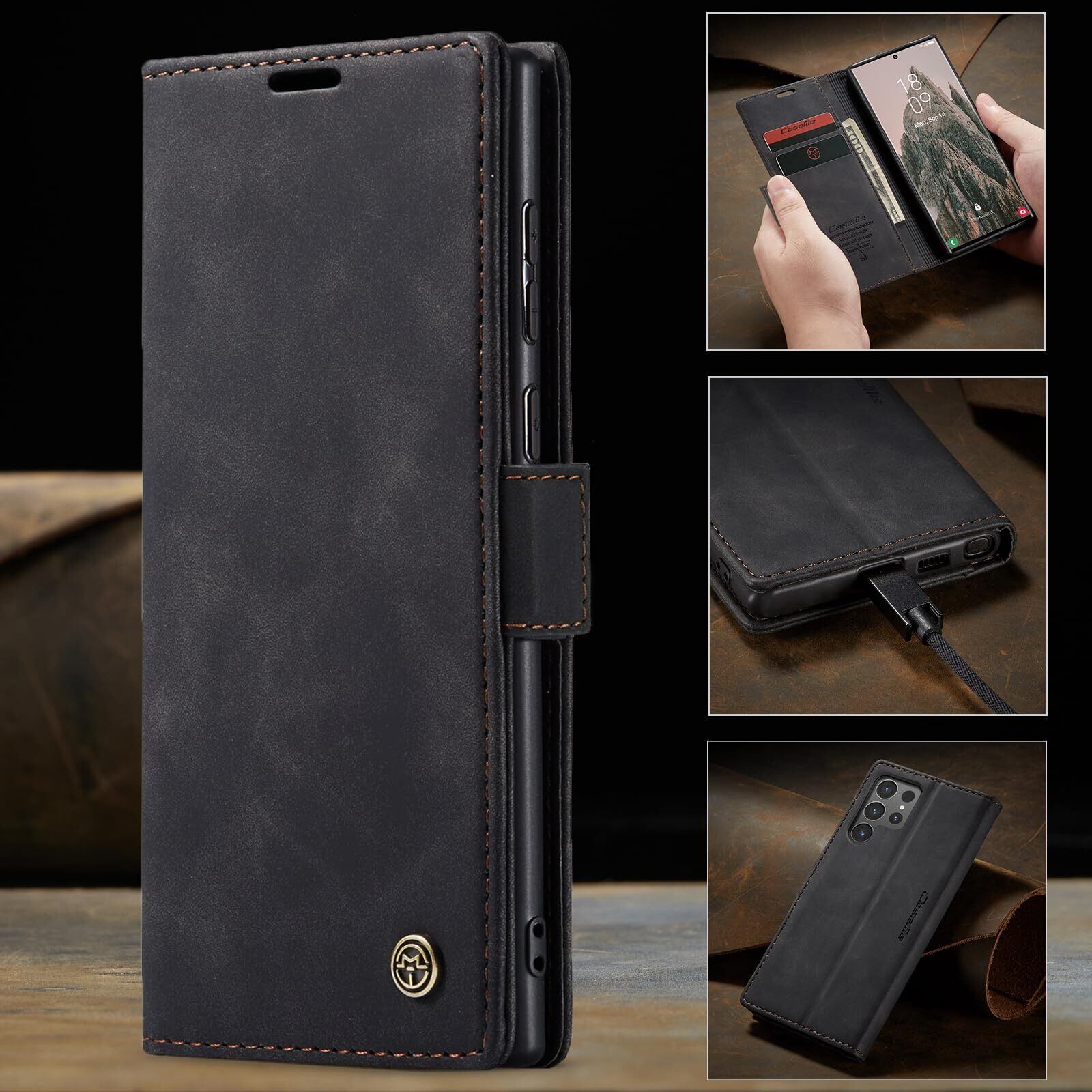 Galaxy S23 Ultra ケース 手帳型 Samsung ギャラクシー S23 ウルトラ/SC-52D / SCG20 用 カバー OURJOY スマホケース 財布型 カード収納 横開き レザー TPU 耐衝撃 携帯カバー 横置き機能 マグネット式 おしゃれ • ブラック