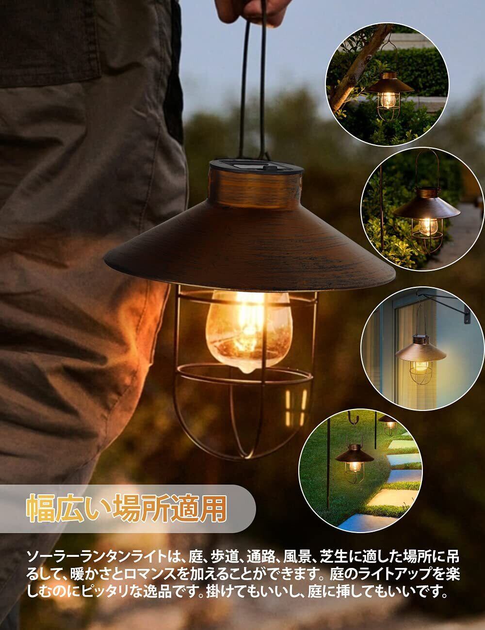 ソーラーランタン 屋外防水 屋外ランタン おしゃれ ガーデンライト ソーラーライト 太陽光LEDランタン 吊り下げ LED 暖色 省エネ 屋外 レトロ アンティーク 北欧 照明 飾り用 IP55防水 自動点灯 玄関先/車道/歩道/庭/ガーデン/ベランダ ブロンズ (2個セット)