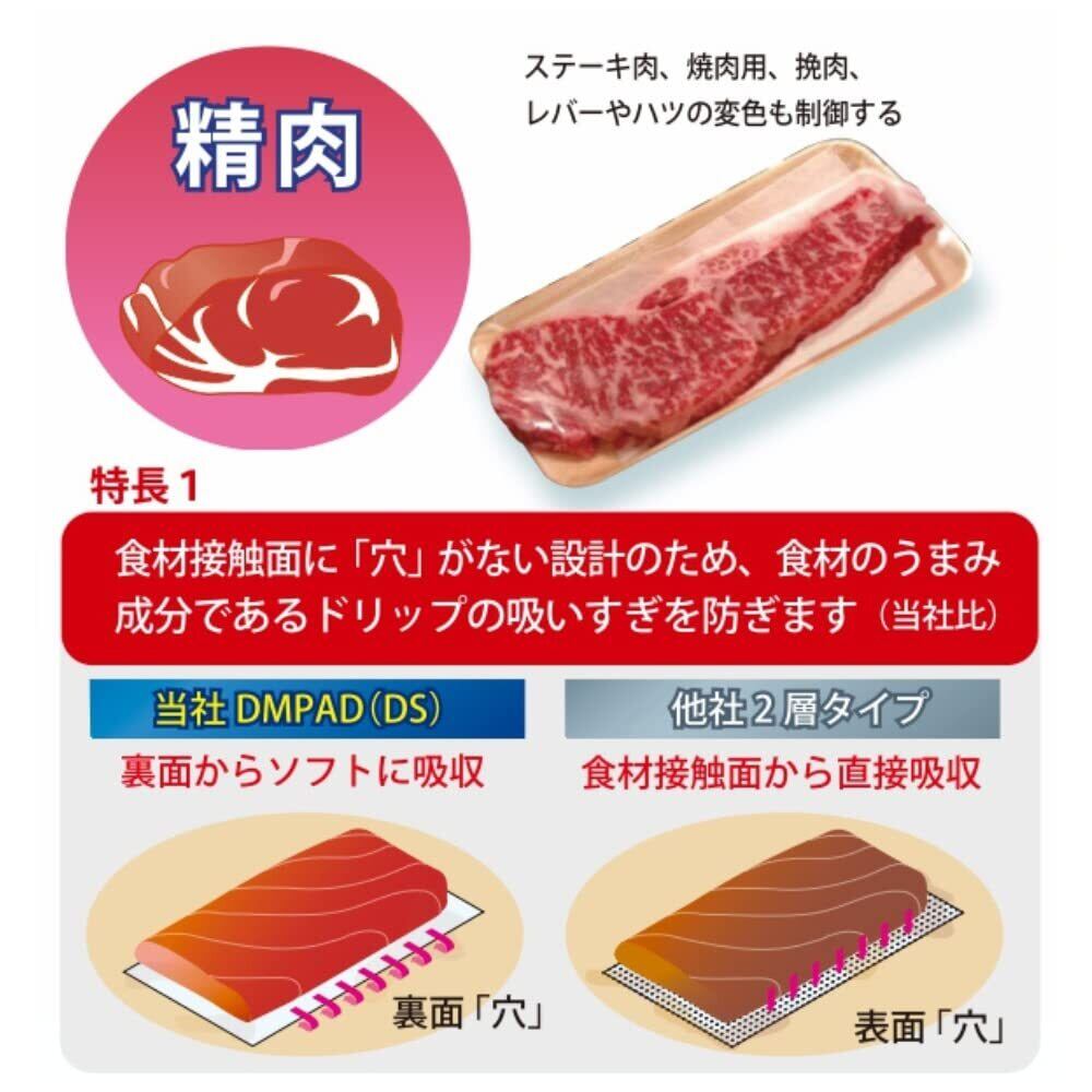 ・3層タイプと比較してドリップ「吸収力」「保持力」があり食品鮮度を長く保ちます(当社比)