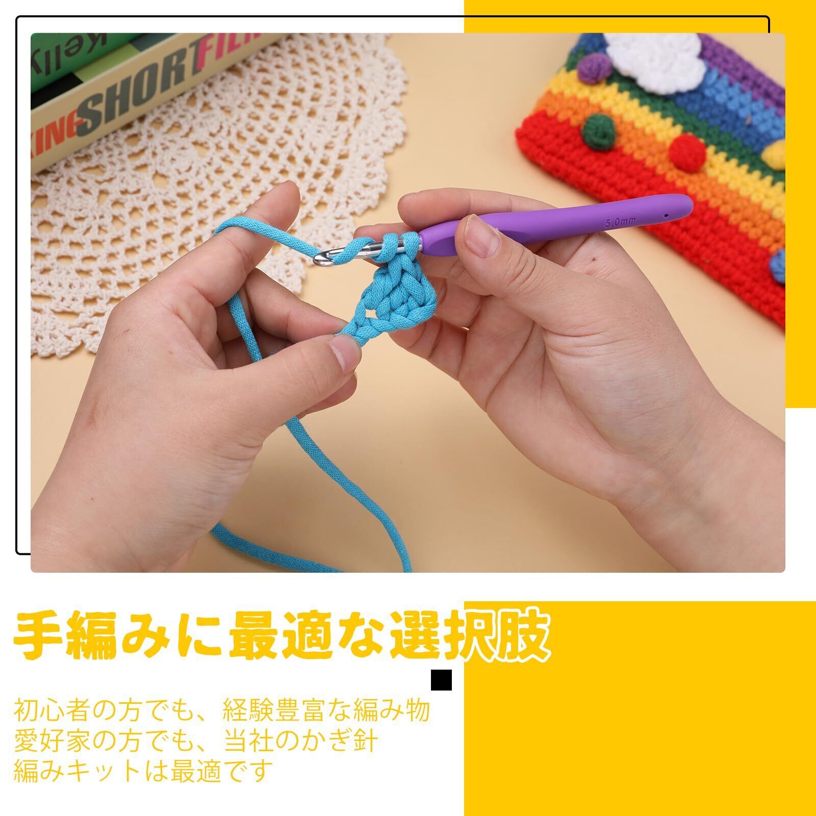 かぎ針セット内容: 13*編み針、10*段数マーカー、1*ハサミ、1*目数段数計、9*縫い針、2*なわあみ針、1*PUバッグ、1*カッター。編んだ時に余計な引っ掛かりがなく、初心者でもスムーズに編むことのできます。