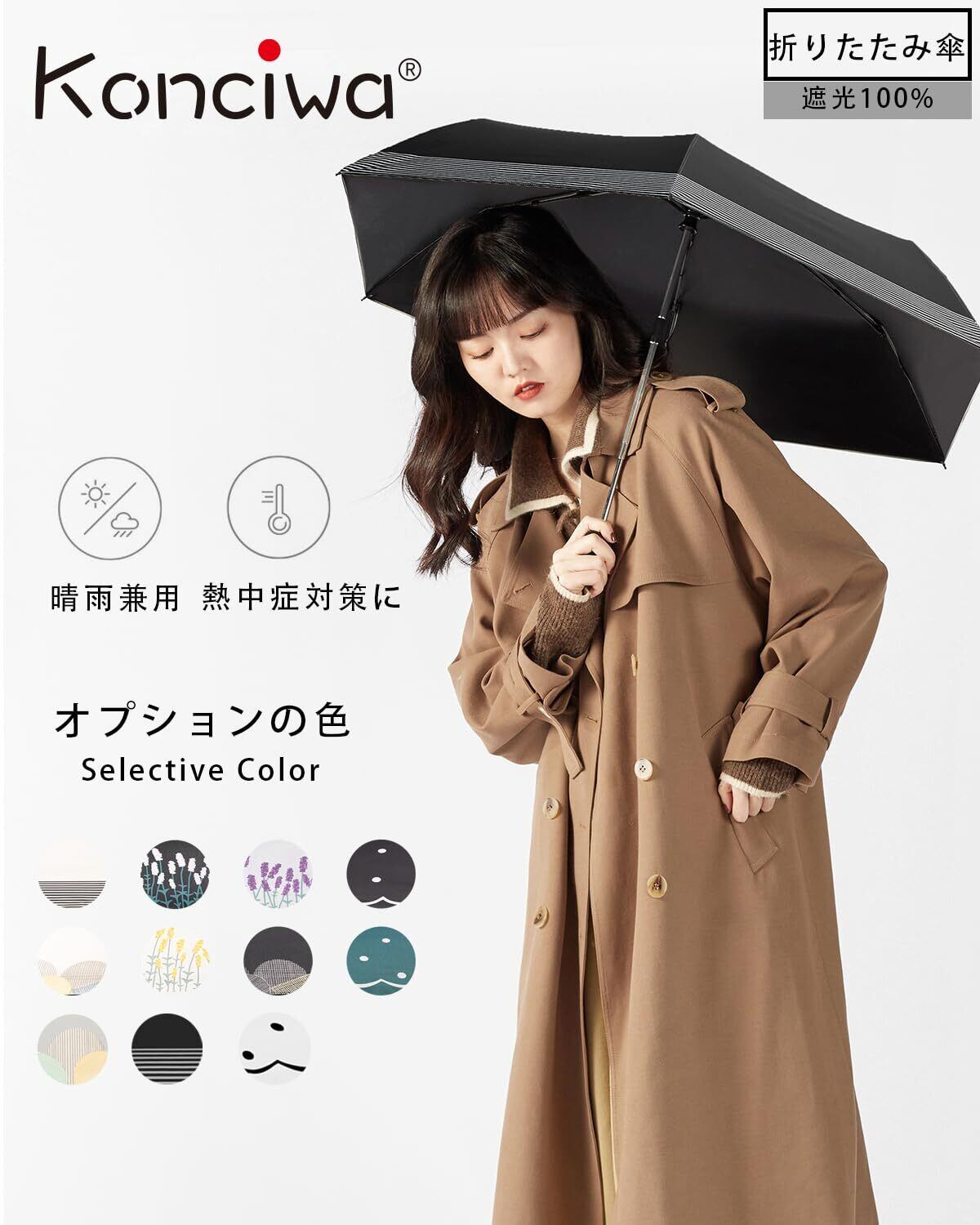 Konciwa【新登場】日傘 超軽量 ワンタッチ 自動開閉 国内機関遮光率100%認証 遮光 遮熱 UVカット 折りたたみ傘 コンパクト 折り畳み日傘 紫外線遮断 耐風撥水 晴雨兼用 携帯便利 メンズ レディース 母の日 父の日