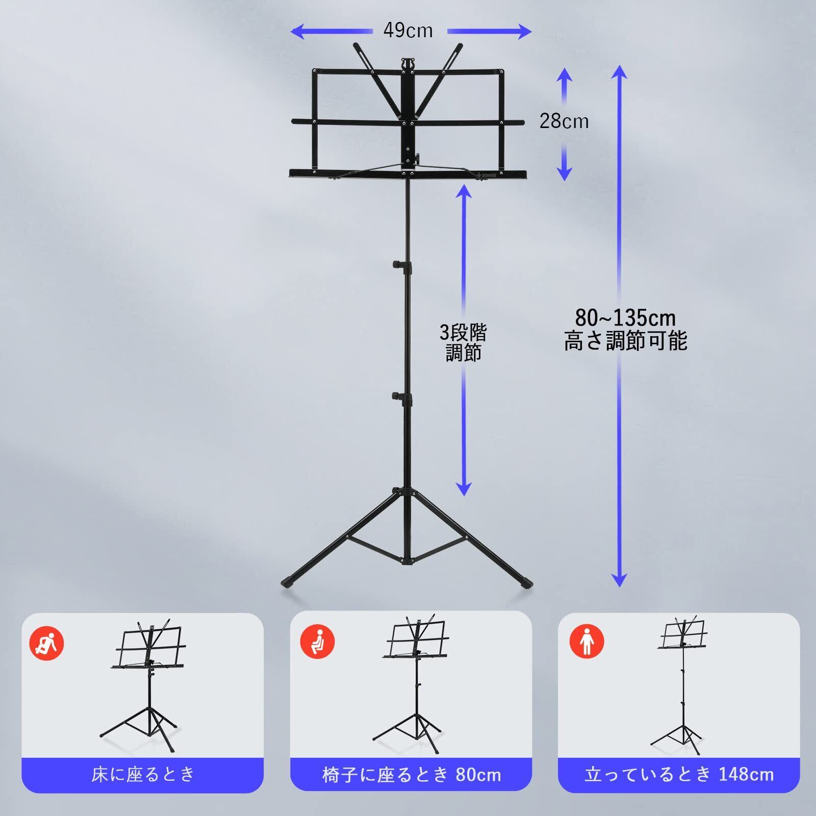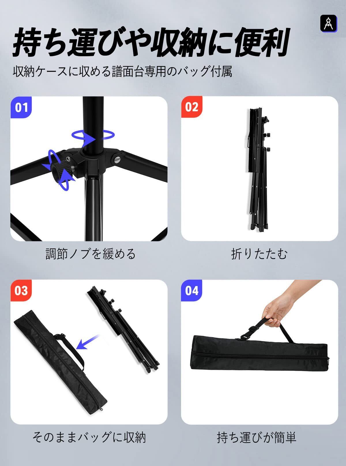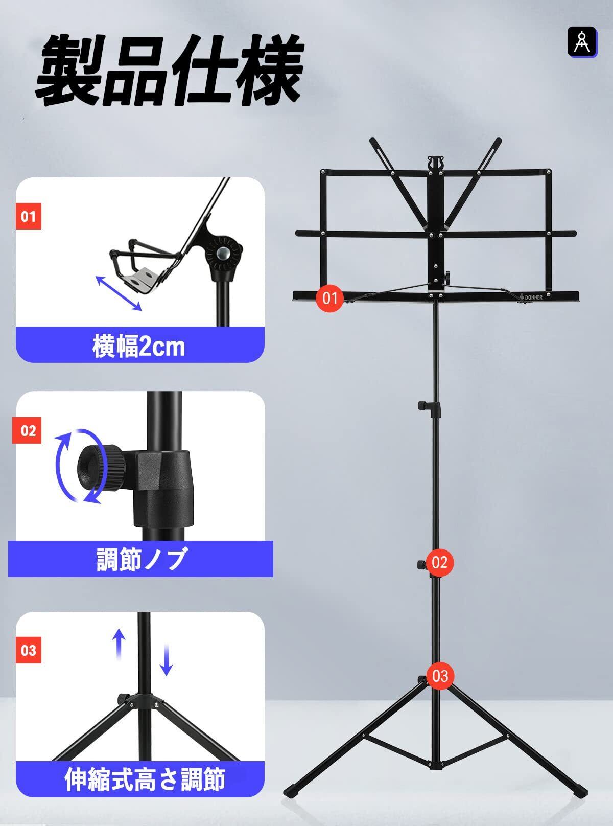 【特価商品】Donner 譜面台 軽量 折りたたみ式 楽譜クリップとファイル付き 楽譜スタンド 安定 80cmから135cmまで高さ調整 大容量収納ケース付き 楽譜たて デスクトップスタンド 軽量スチール製 ブラック | jake