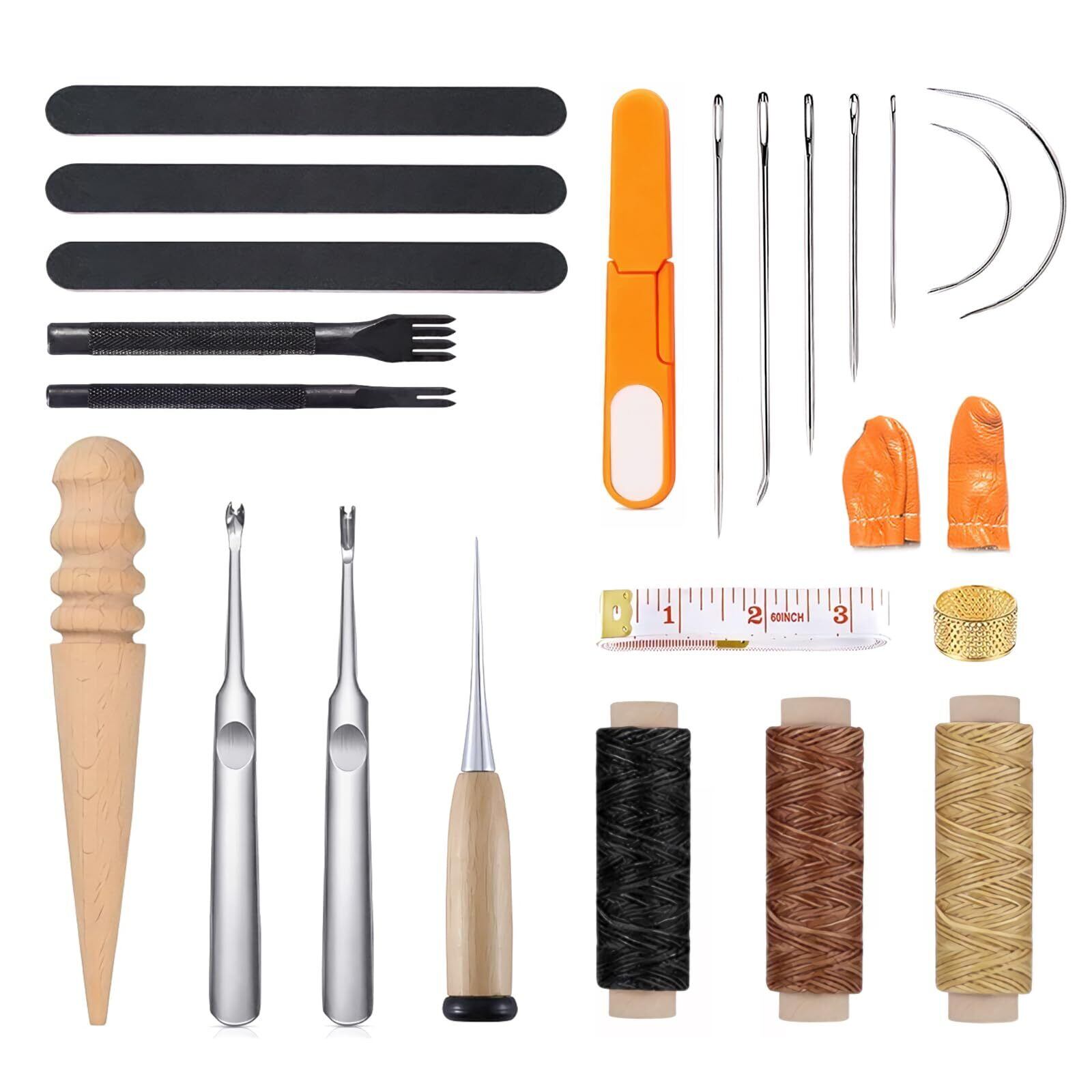 サムコス レザークラフト 革工具セット 裁縫工具 皮革工具 針 手作り 革用 レザー 紐 ワックス糸 手縫い 工具 DIY 縫製キット ザーツールセット (24個セット)
