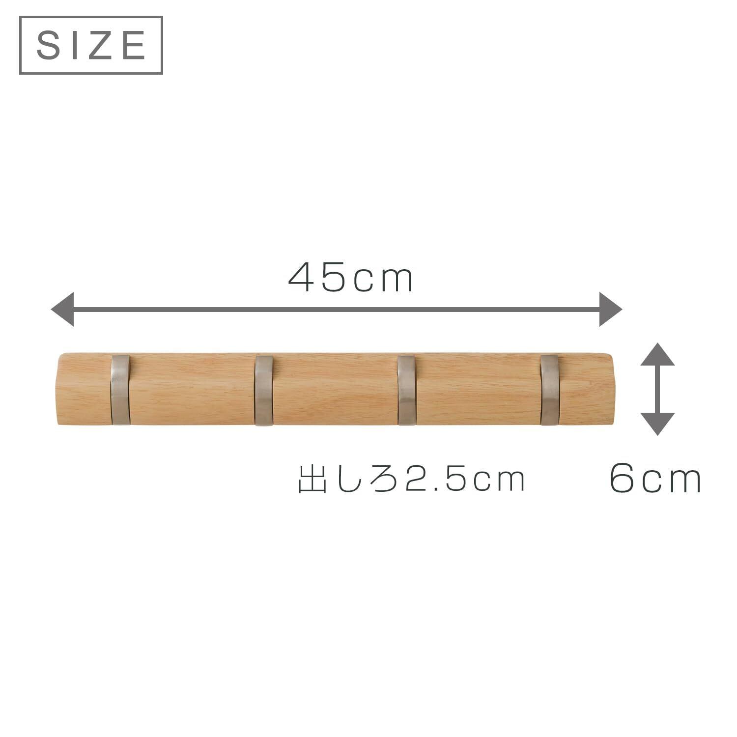 ドウシシャ ウォールハンガー 壁掛けフック 4連 開閉式フック 壁を傷つけない 賃貸OK ナチュラル木目 おしゃれ 木製 取付ガイド付きで簡単設置 石膏ボード 穴が目立たない ピン留め ネジ留め 強力 壁面取付金具 幅45 AWH-4NA