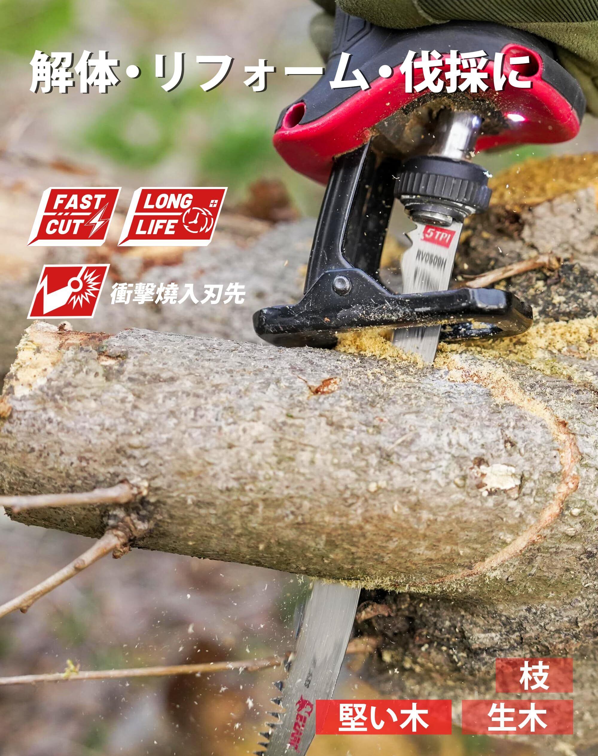 EZARC(イザーク) レシプロソー替刃 生木用 全長225mm 5山 高速切断 クロムバナジウム鋼 衝擊燒入 3倍の長寿命 生木の剪定 枝・幹の伐採 (5本入)