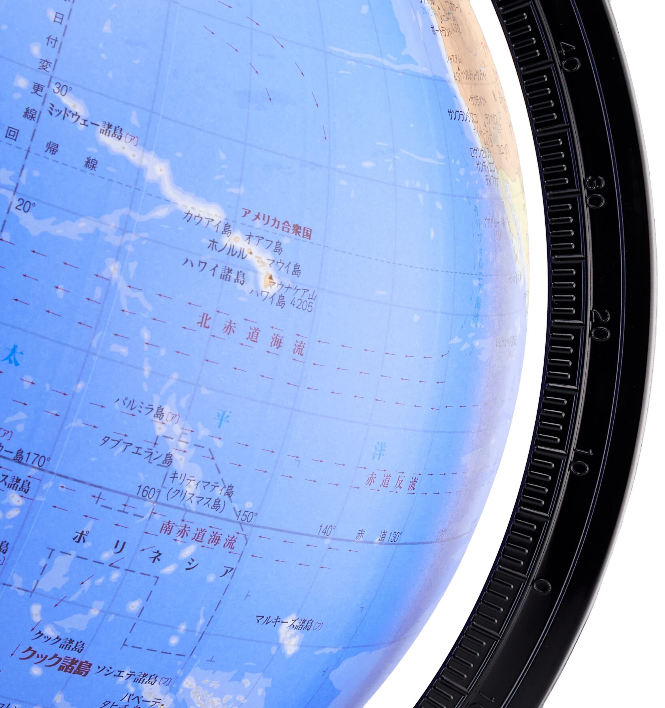 黒いホルダーと黒い台座を組み合わせたインテリアとしてもお薦めの地球儀。日本地図付き。日本製。