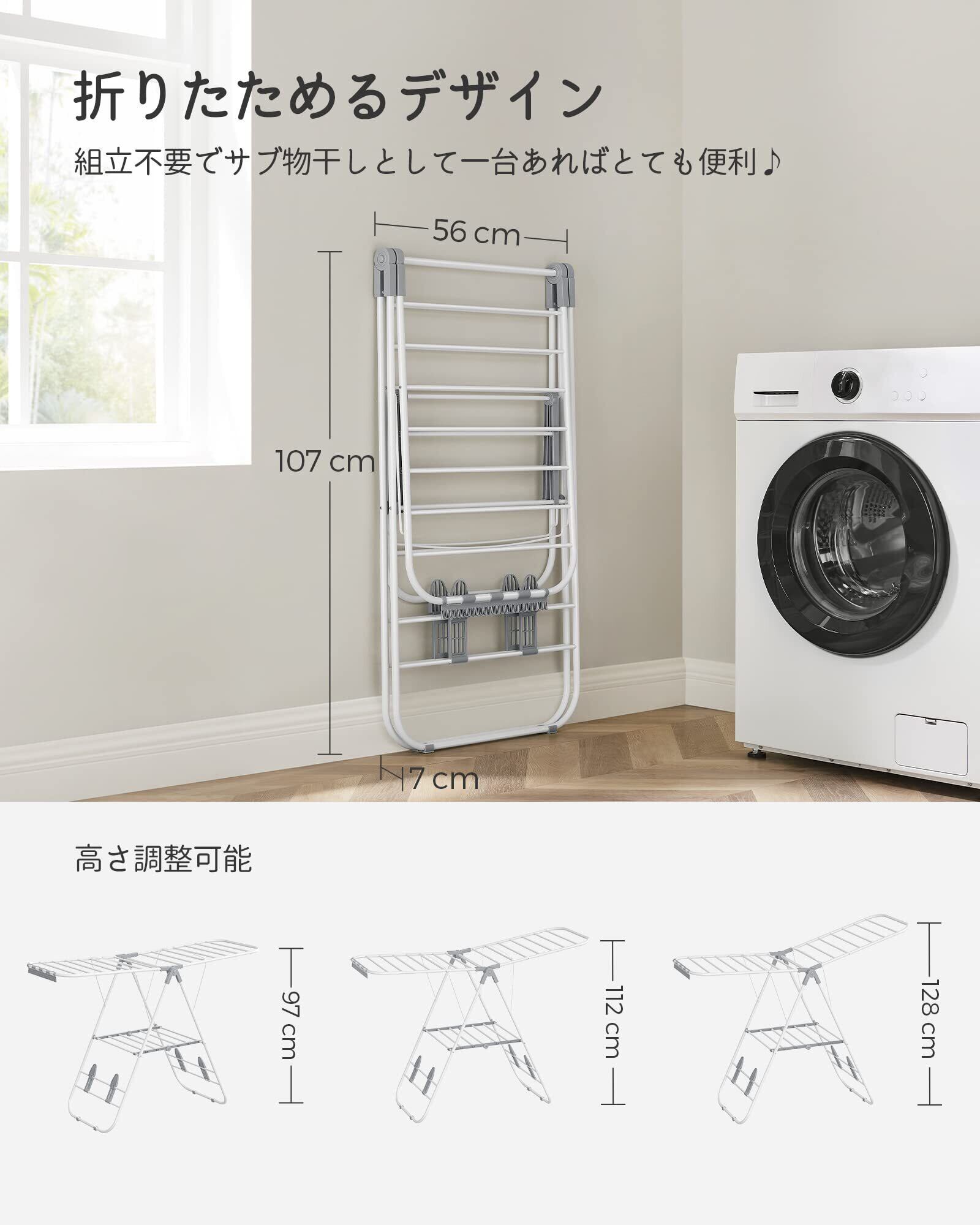 【新春セール】SONGMICS 物干しラック 室内 物干しスタンド 洗濯干し台 布団干し タオル干し 折り畳み式 幅147cm 物干しハンガー 物干し竿 省スペース スチール製 頑丈 ベランダ 屋外 錆びにくい コンパクト 完成品 LLR502G01 | jake