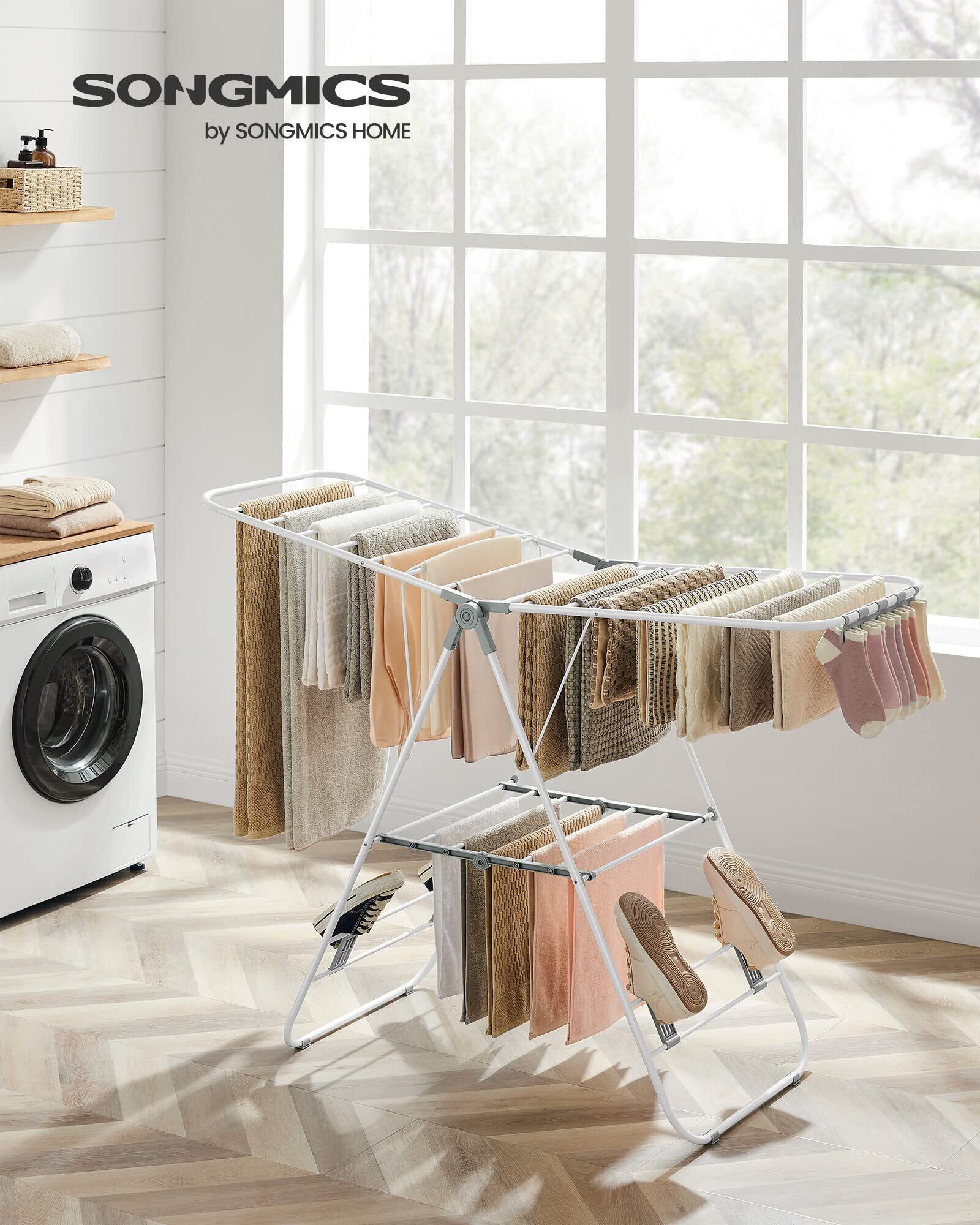 SONGMICS 物干しラック 室内 物干しスタンド 洗濯干し台 布団干し タオル干し 折り畳み式 幅147cm 物干しハンガー 物干し竿 省スペース スチール製 頑丈 ベランダ 屋外 錆びにくい コンパクト 完成品 LLR502G01
