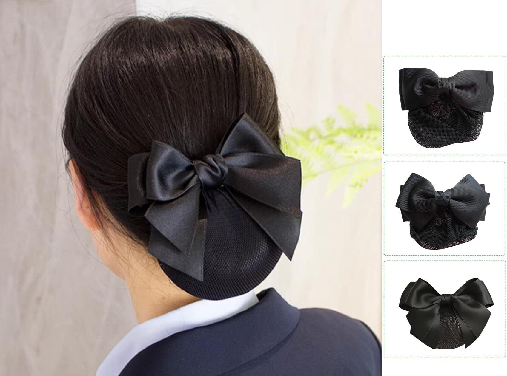 【新春セール】ブルーリフレイン ヘアアクセサリー リボン バレッタ シニヨン お団子 ネット付き かわいい 可愛い ネット おしゃれ 大人 おだんご ヘアー 韓国 ヘア 結婚式 フォーマル シニョン 髪飾り 髪留め まとめ髪 髪止め ネット付 りぼん 黒 (ブラック A (細めネット)) | jake