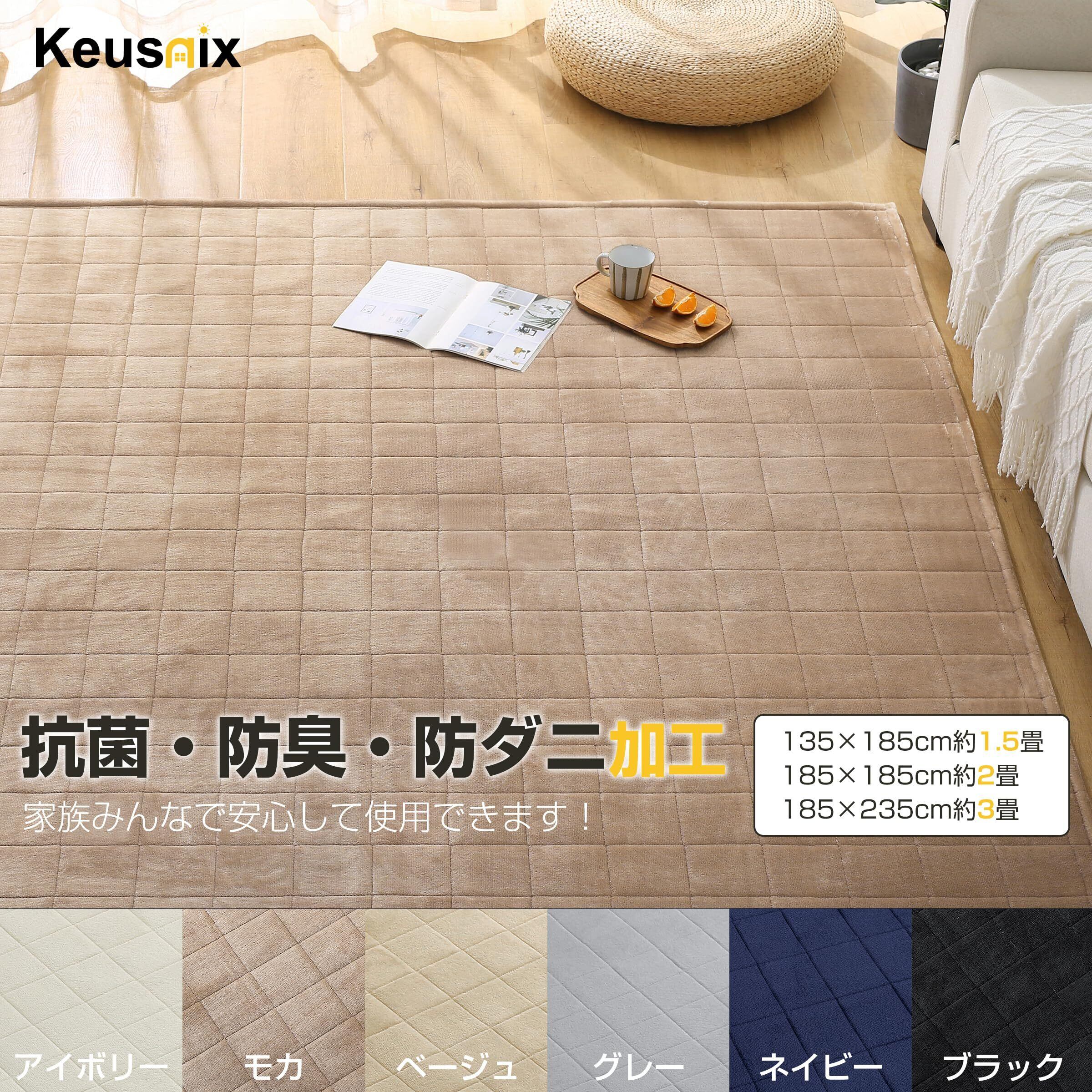 Keusnix ラグ カーペット キルトラグ 滑り止め付き 洗える ラグマット 135×185cm 約1.5畳 絨毯 オールシーズン 抗菌防臭 ふわふわ肌触り フランネルラグ 床暖房 ホットカーペット対応 無地 モカ