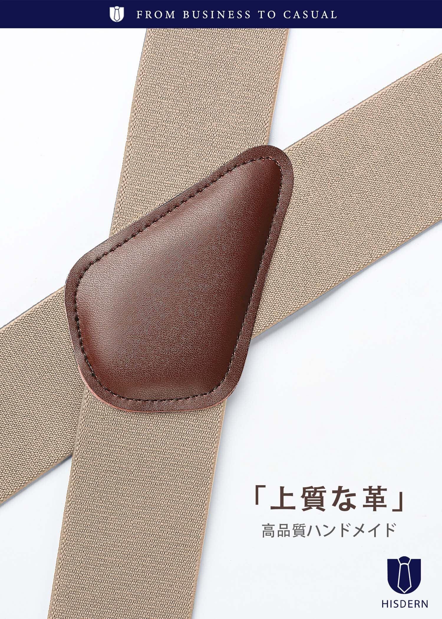 HISDERN ヒスデンサスペンダー X型 50mm幅広 メンズ 大きいサイズ 黒 X型 ブラック 革 フォーマル しっかりとホールド 調節可能 吊りバンド ビジネス カジュアル
