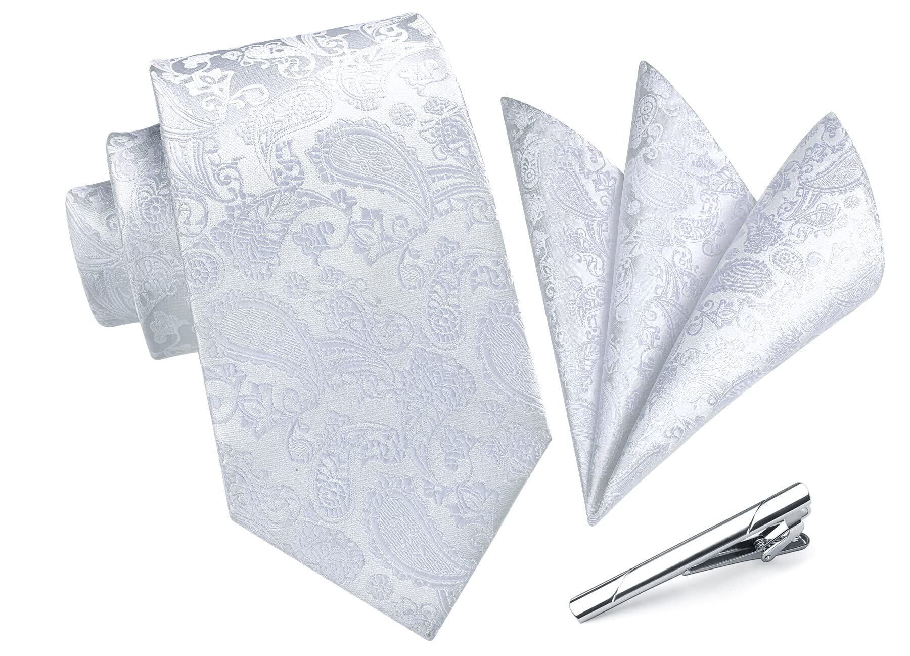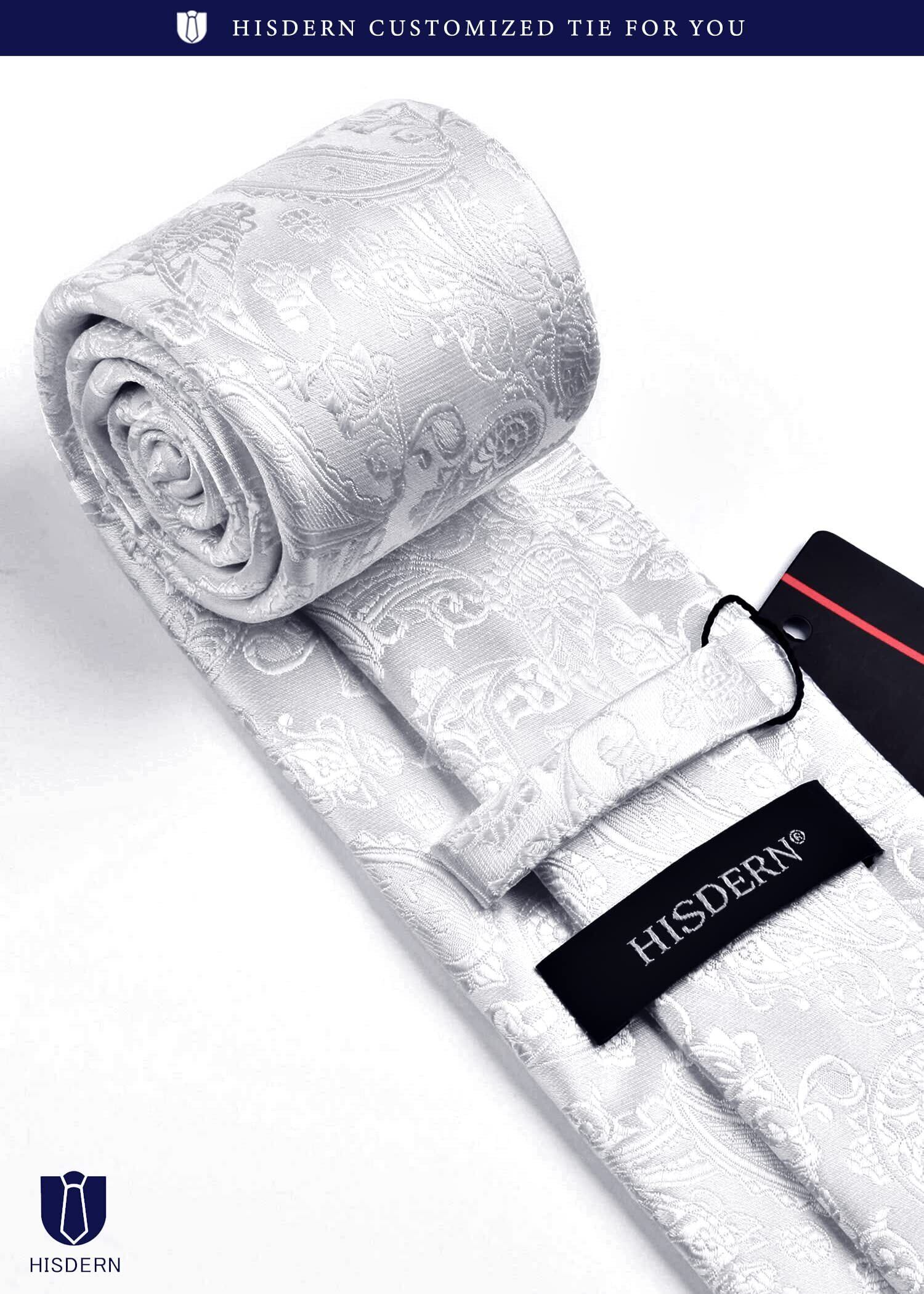 HISDERN ヒスデン 結婚式 ネクタイ シルバー メンズ ネクタイチーフ セット ビジネス 3点セット タイクリップ 高級 ギフトボックス付き 紳士用 礼服用 入学式 卒業式 TA-004S