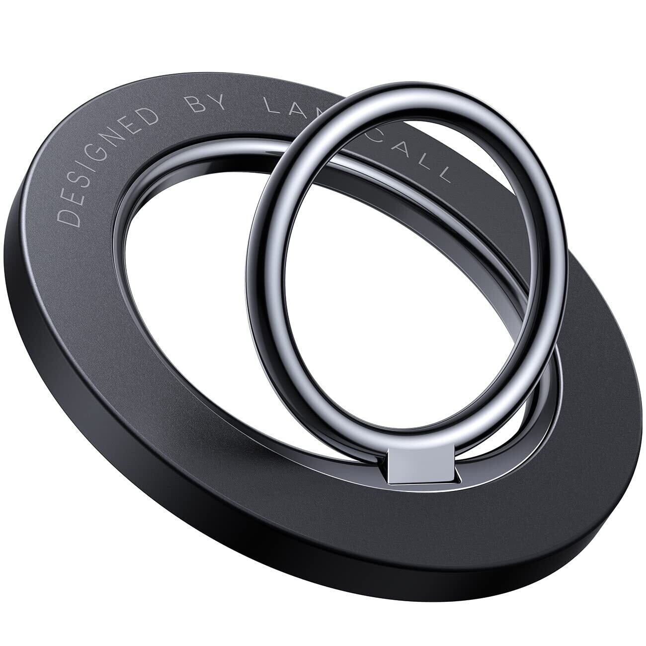 Lamicall MagSafe対応 360度回転式 スマホリング : マグネット式 携帯電話 ホルダー リング マグセーフ バンカーリング 角度調整 スタンド 磁気増強 メタルリング付き 取り外し Magnetic Phone Grip iPhone 2024 iPhone 16 16 Plus 16 pro 16 pro max iphone 15/14/13 Android に対応 ブラック