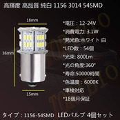 【特価セール】TORIBIO 4個入り 高輝度 S25 シングル球 LED(P21W 1156 S25 G18 BA15S)ピン角180度 長寿命 バックランプ 3014SMD 54連 6000K 12V 24V兼用 (ホワイト) | jake