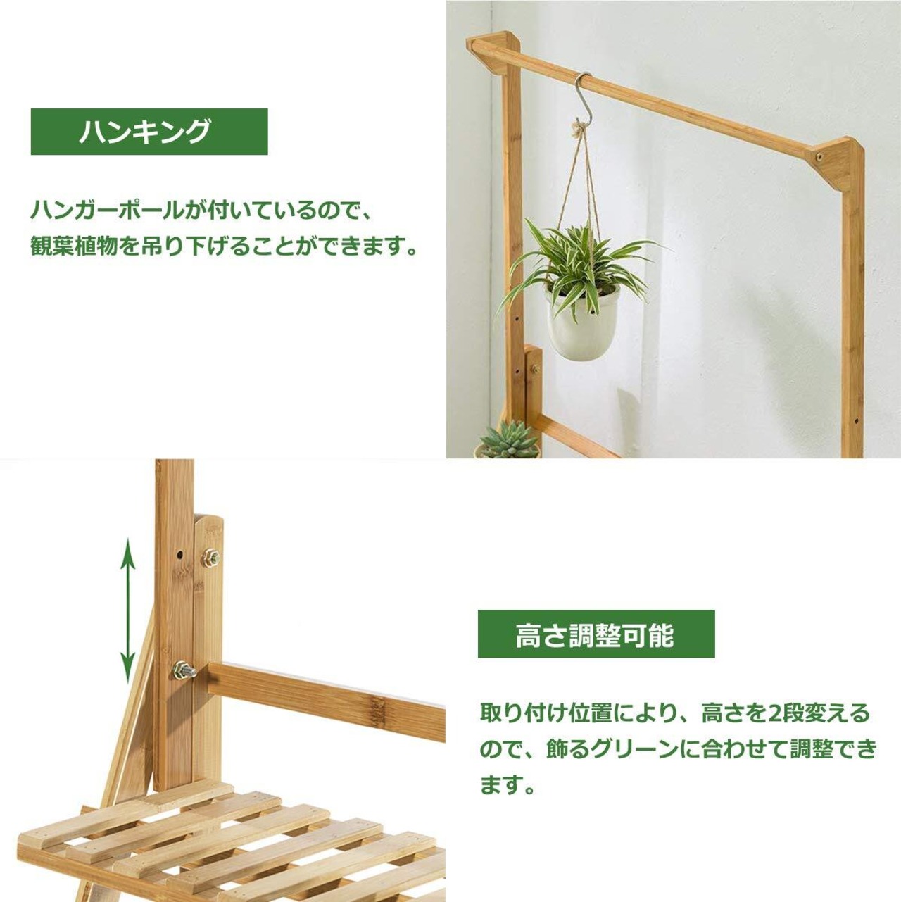 UNHO ガーデンラック 3段 フラワースタンド 天然竹製 フラワーラック 幅100cm ハンギング 吊り下げ 花台 植物棚 多肉植物 棚 ベランダ 園芸ラック 鉢 プランター 植木鉢スタンド