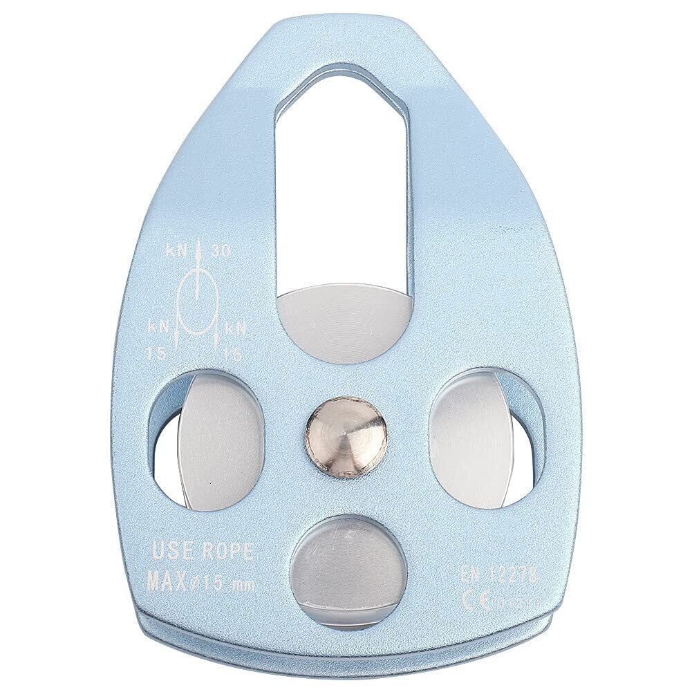 クライミングプーリー 登山プーリー 15mmロープ用 32KN 軽量 耐摩耗性 汎用 シングル滑車 探検/クライミング用/高空作業/救助(青)