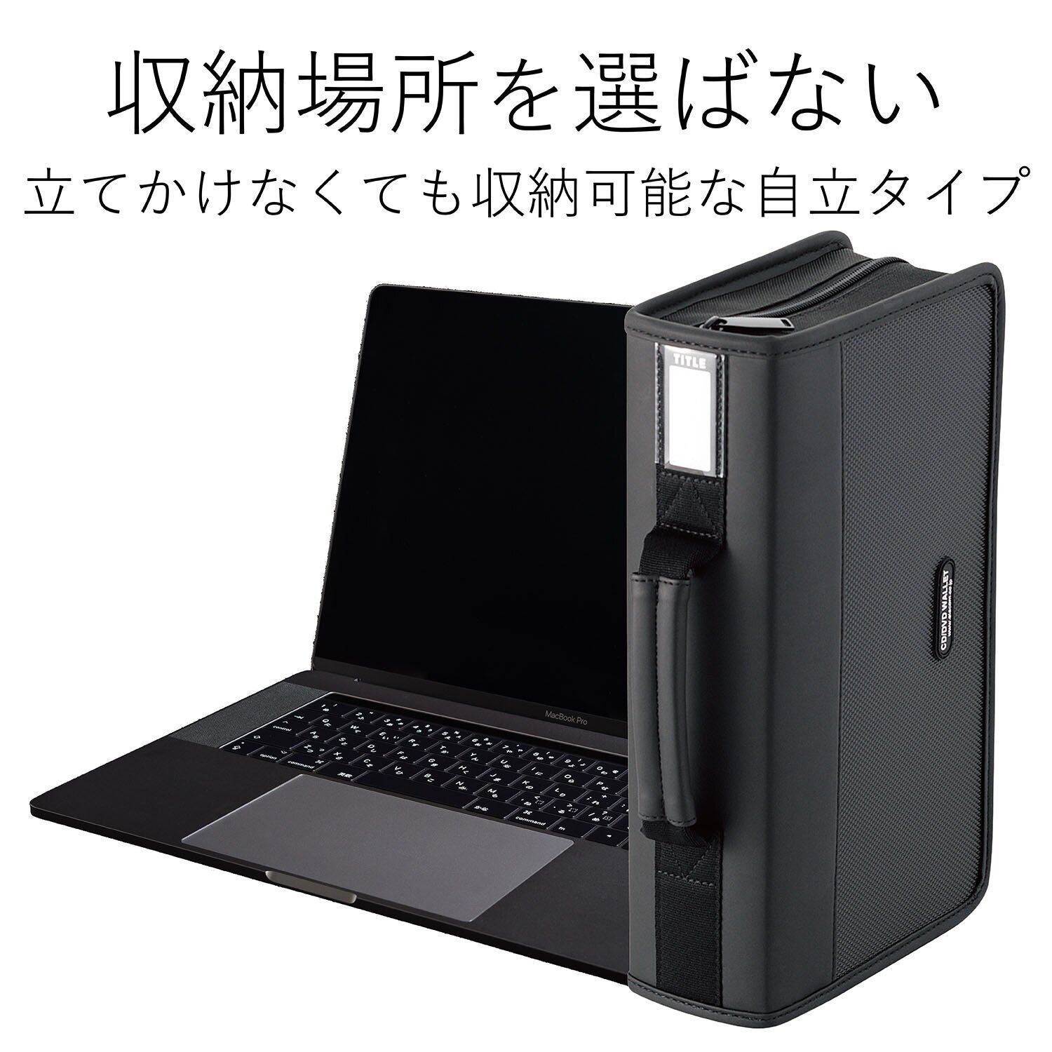 本棚や机周りに縦置きもできる自立タイプ。大量のCD/DVDをコンパクトに収納できるファスナーケース。