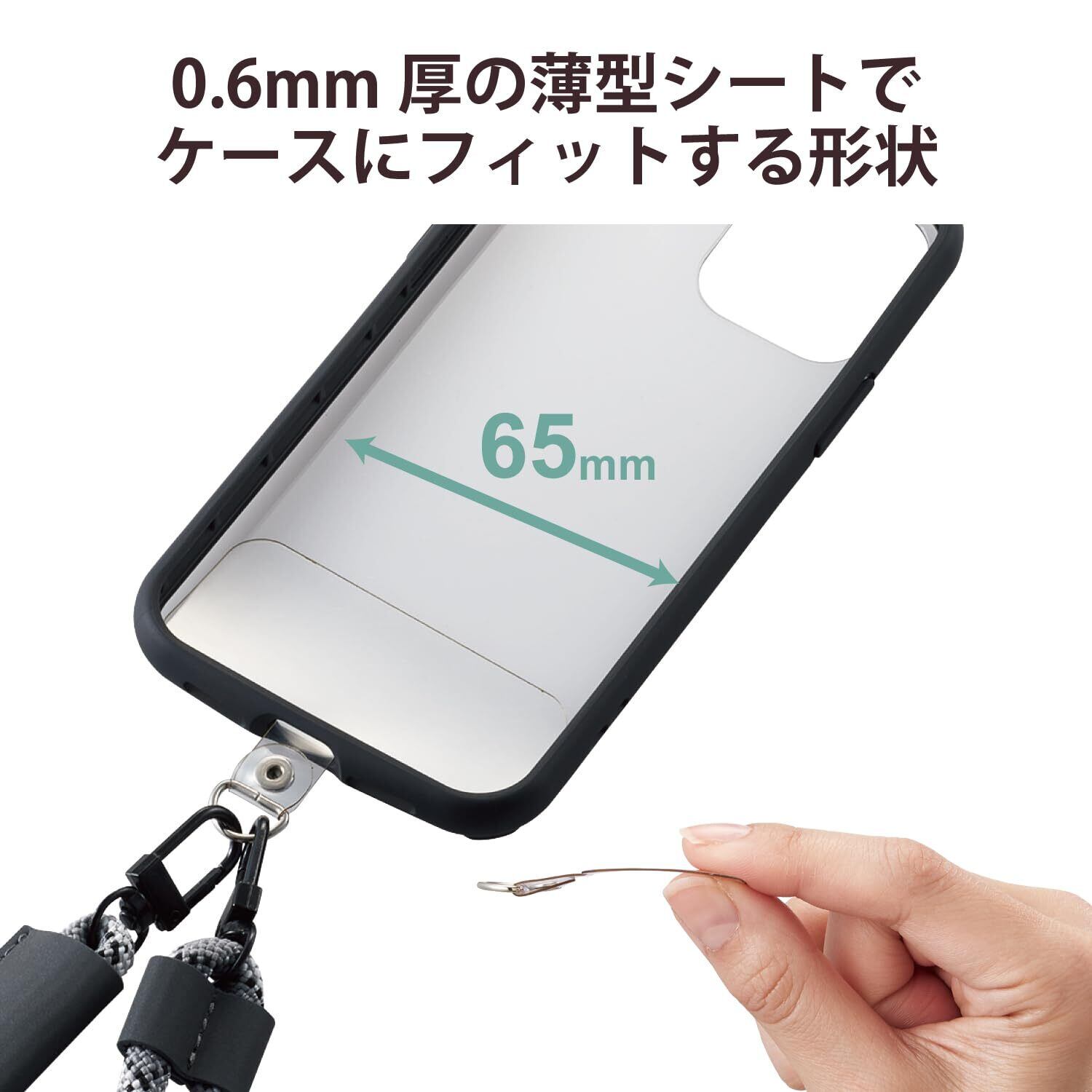 ■お使いのスマホケースにストラップホールがなくても、ケースのケーブル穴に通すだけで使用できます。