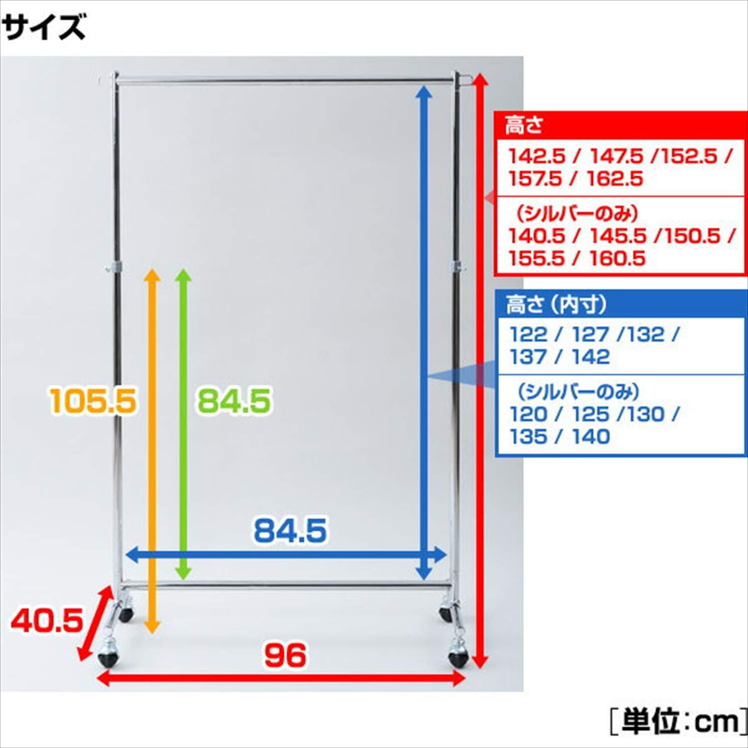 ハンガーバー内寸:幅84.5 高さ120-140cm(5cm×5段階)、84.5cm(最低時)