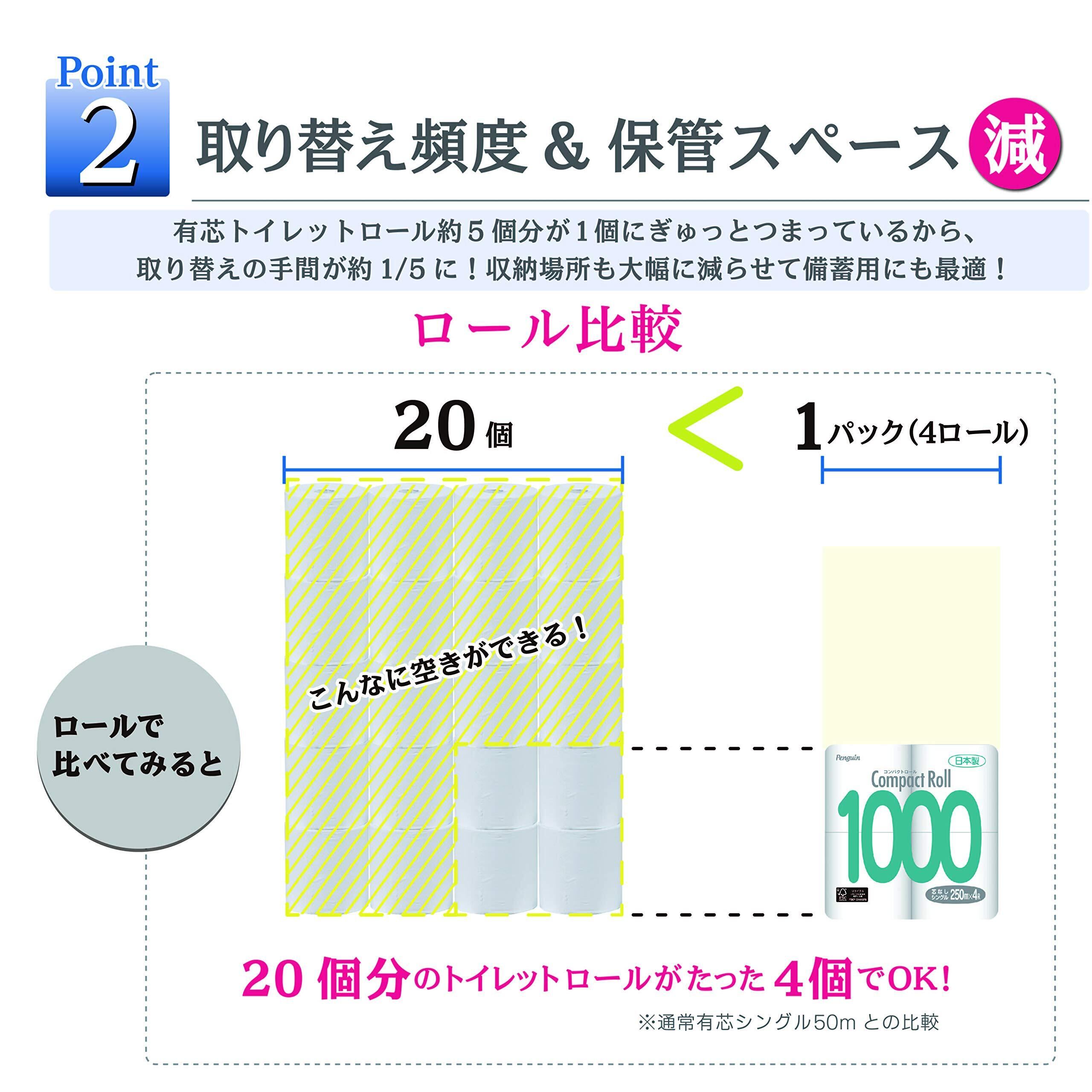 【ケース販売】丸富製紙コンパクト1000トイレットロール 再生紙 4Rシングル×4入