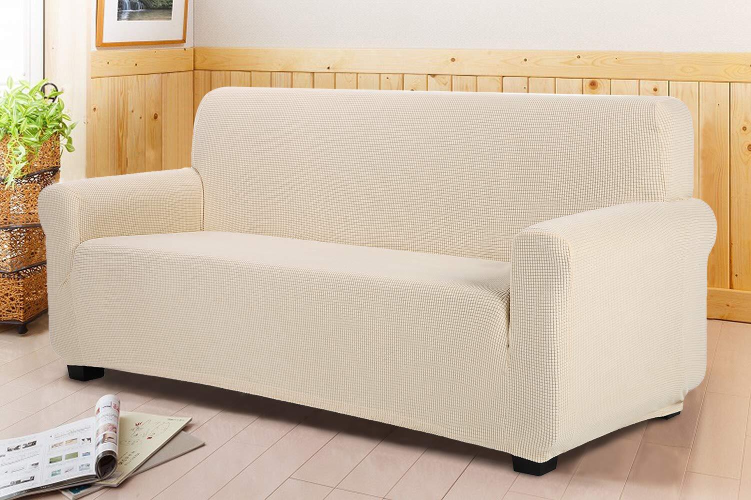 TIANSHUソファーカバー 2人掛け 肘付き 無地 縦横弾力 ストレッチ フィットタイプ 肘付き 滑り止め 柔らかい 伸縮素材伸び良く 四季適用 超便利 (ベージュ)
