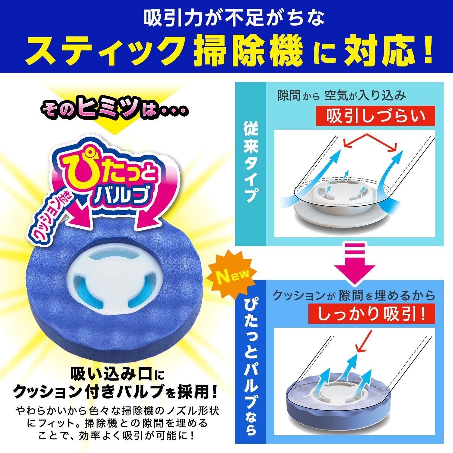 クッション付き「ぴたっとバルブ」でスティック掃除機にも対応!