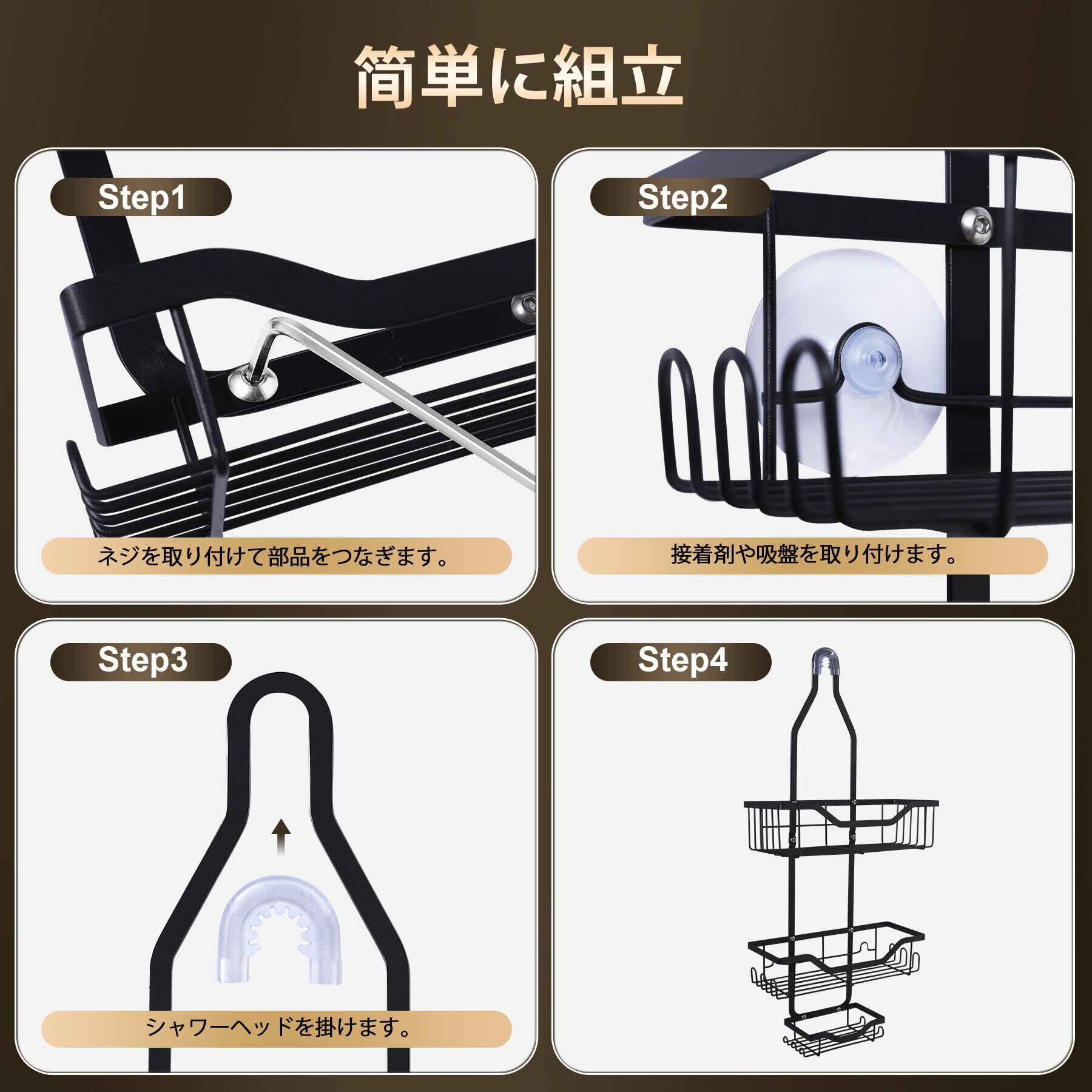 【組立簡単】:この3段式シャワーラックは手元に到着してすぐ使用したり、すべての部品が取り外し可能で、必要なときに手洗いが簡単です。狭い空間を有効的に活用できます。シャワーフックを差し込むだけでも使えるので便利です。