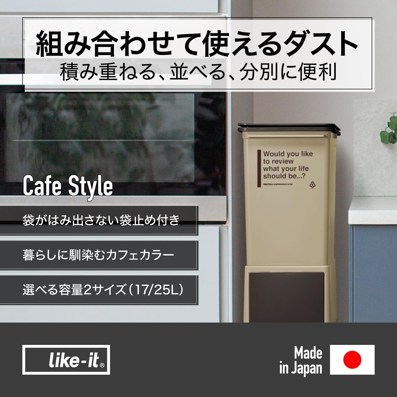 ライクイット (like-it) フタ付きゴミ箱 カフェスタイル フロントオープンダスト スリム 深型 約25L 日本製 CFS-14 ブラック スタッキング 重ねられる ダストボックス 分別 ゴミ箱25L