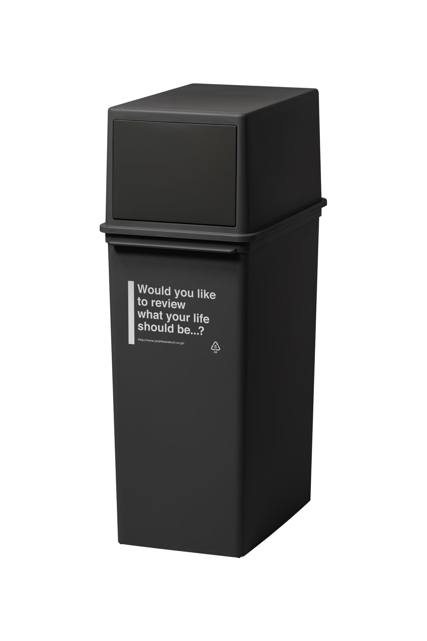 カフェにありそうな、お洒落なフロントオープンタイプダスト。 ゴミ箱がインテリアに変わる、雰囲気のある英字のデザインとワントーンのカラー。 フタの向きを変えてセッティングすれば、英字を隠して他の家具と統一感をもたせることもできる。 細身で縦長の形状は分別用にいくつか並べたくなる。(スタッキング可能) 再生材10%以上配合