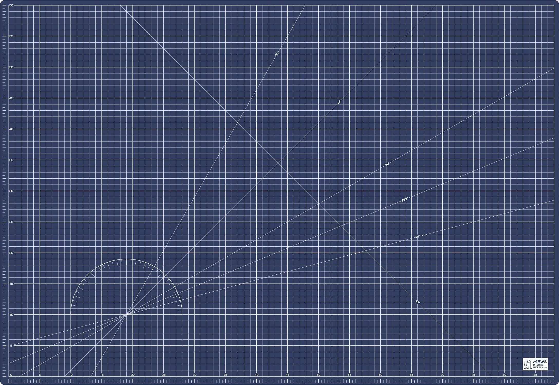 【 限定】オルファ(OLFA) ロータリーマット A1(620x900x1.5mm) グリッド・角度ライン入り ネイビー RM-A1-EC カッターマット