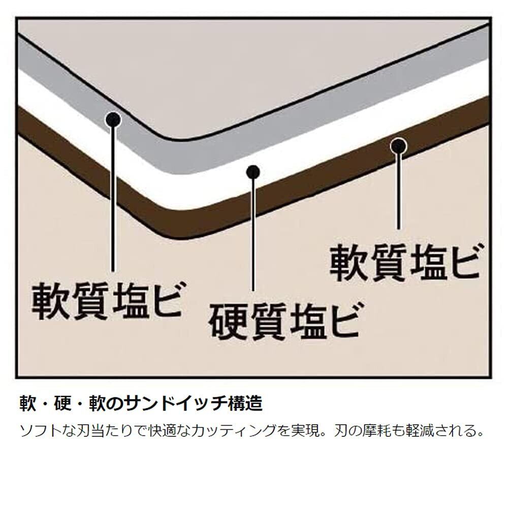 軟・硬・軟のサンドイッチ構造のためソフトな刃当たりで快適なカッティングを実現したカッターマット。刃の摩耗も軽減されます。