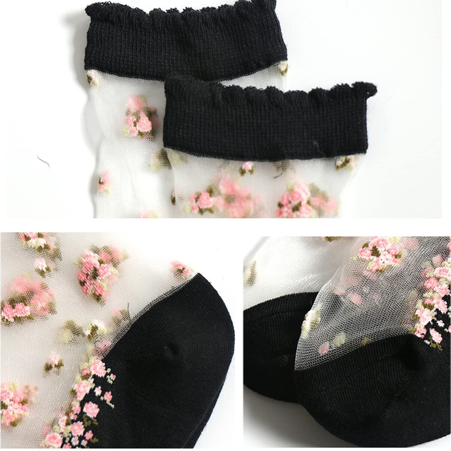【在庫処分】靴下 レディース 夏 シースルー 花柄 レースソックス かわいい くつした 女性用 おしゃれ 通気 極薄 透明 クルーソックス 夏用 涼しい くつ下 大きめ 22-25cm (5足セット)人気母の日ギフト | jake