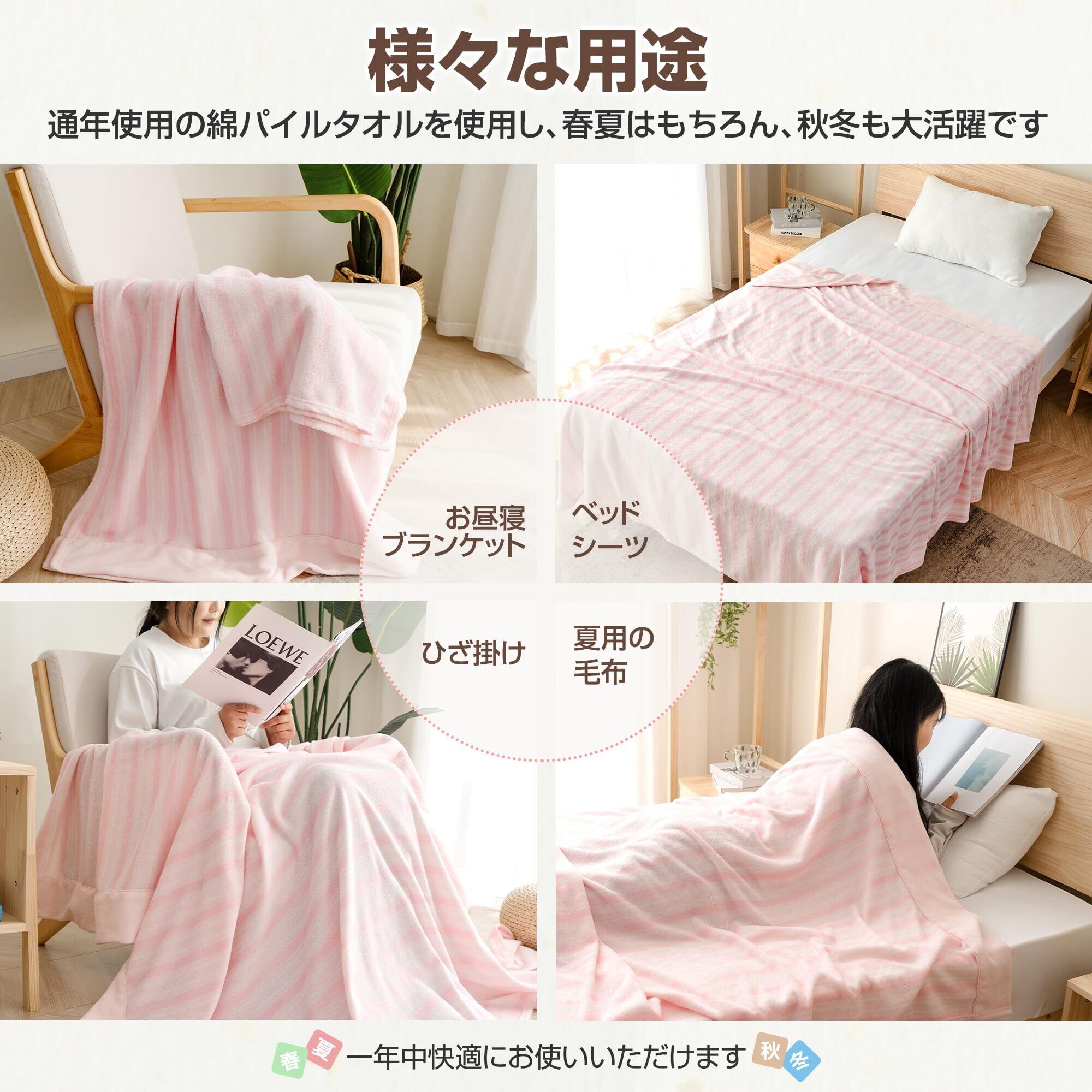 Zdeysun タオルケット シングル 綿100% キルトケット 肌掛け ブランケット オールシーズン 吸湿速乾 抗菌 防臭 防ダニ 通気性 柔らかく肌触り 天然素材 軽量 リバーシブル 洗える ソファー用 シーツカバー 毛布 ふんわり さらさら ピンク 140*200cm
