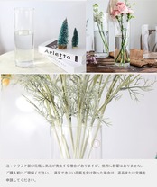 花はもちろん、植物の美しさを最大限に見せることのできるガラス花器は、葉ものや枝もの、実ものの一種生けもおすすめです。 また、程よい軽快さが魅力のガラス花器は、並べて複数使いするスタイルも人気です。ブーケや花束、さまざまなアレンジに向くフラワーベースとして美しい仕上がりをお楽しみください。