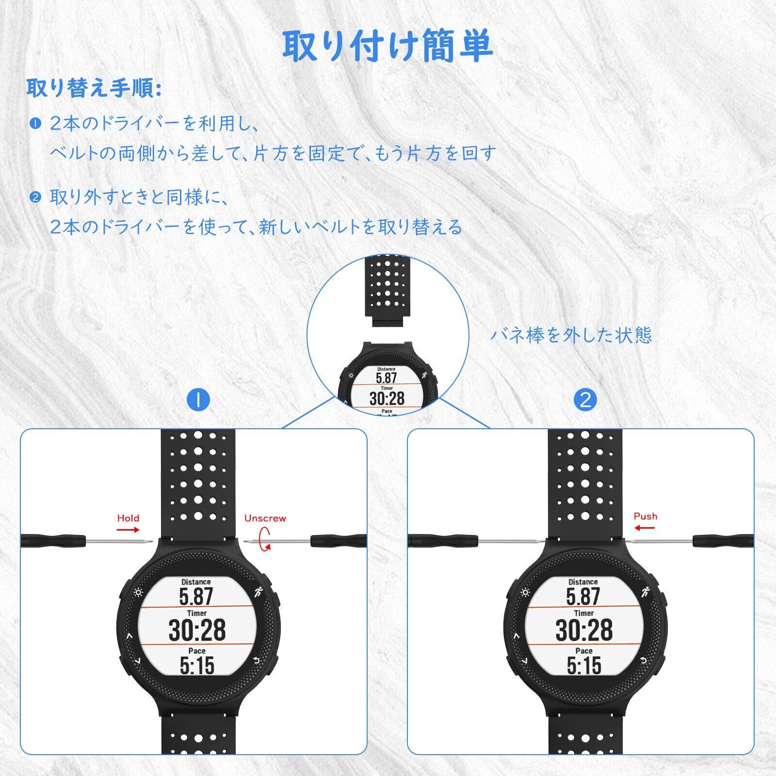 ガーミン ForeAthlete 235/220/230/235/620/630/735 /Approach S20 / S5 / S6 ベルト 交換ベルト バンド ガーミン フォーアスリート235J シリコン製腕時計ストラップ/バンド 交換ベルト ドライバー2つ付き All Black