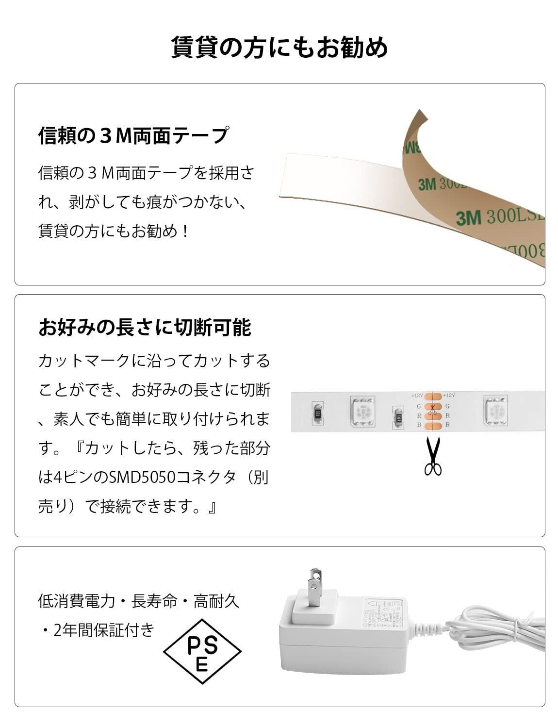 『適格請求書の発行対象商品』【LEDの数が多くてより明るいです!】ほかのメーカーはただ60個LEDが搭載され、暗くて耐久性が弱いです。Leproのledテープライトは、5mのLEDテープ基板に高演色5050SMDチップを150個ぐらい使っており、明るく、鮮やかな色再現が可能な高耐久LEDテープです。