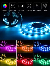 【カラー照明として人気上昇中!】RGBテープライトは通常のレッド、グリーン、ブルー、ホワイト含めて他色20種類のほか、6種類のカーラーDIYモードを備え自在に調整が可能です。専用の44キーコントローラーで、それぞれのカラーLEDの明るさを制御することができます。※ご注意:W(ホワイト)は若干青みがかった色で蛍光灯の昼光色以上に青いです。