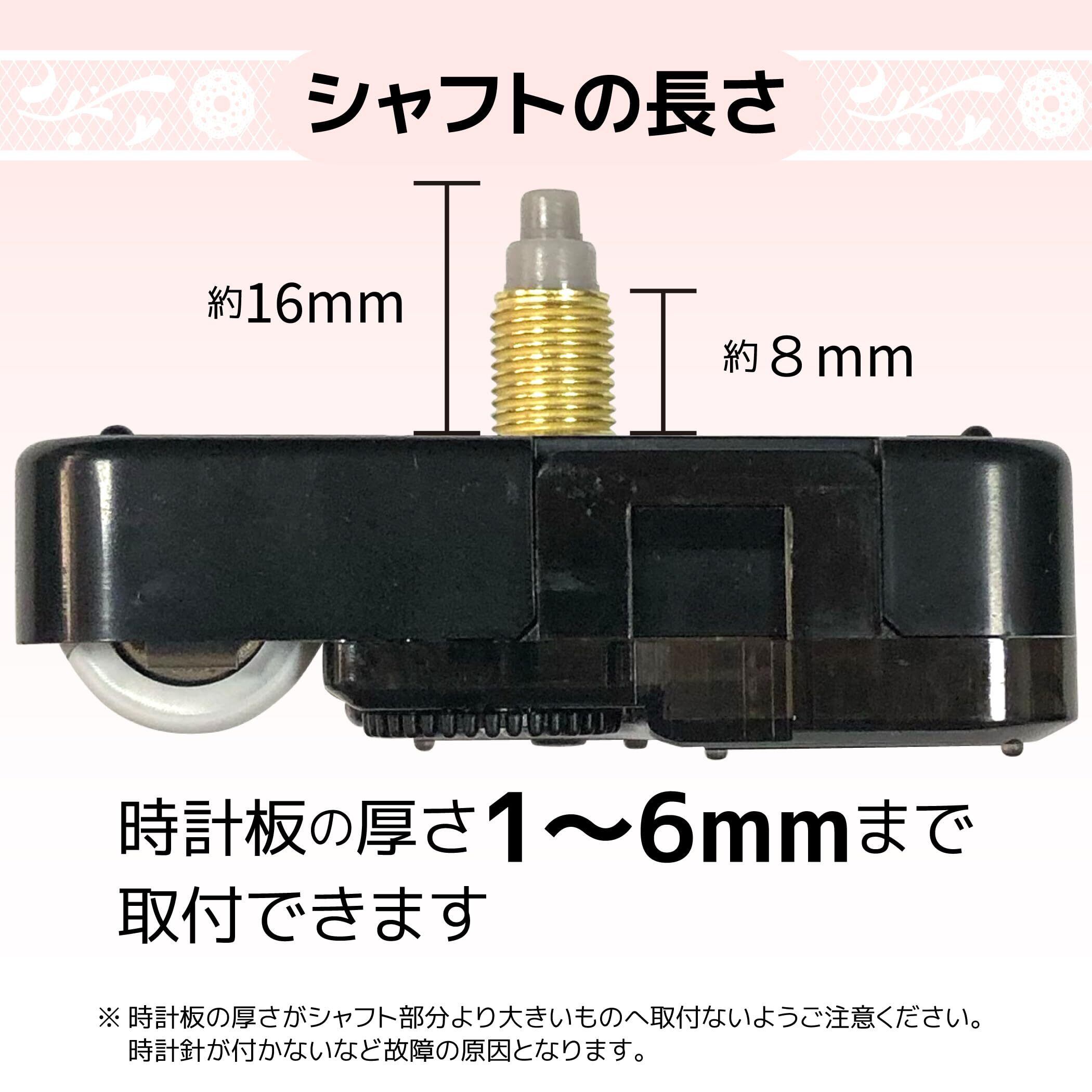 時計針サイズ;時針:38mm、分針:50mm、秒針:52mm シャフト長さ;16㎜(ねじ部分8mm)