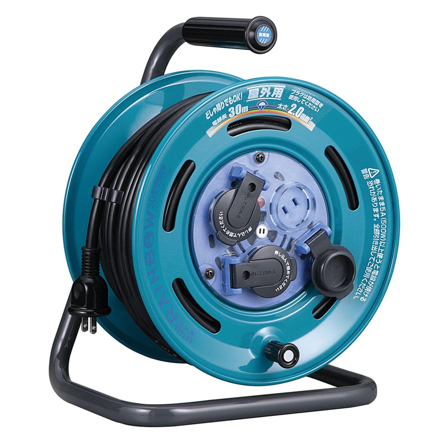 ハタヤ (HATAYA) コードリール 屋外用 (防雨型) 100V型 コード30m 太さ1.25㎟ 標準型 コンセント3個 コンセント防雨キャップ パイロットランプ内蔵 家庭用 工場用 建設現場 レインボーリール CE-30