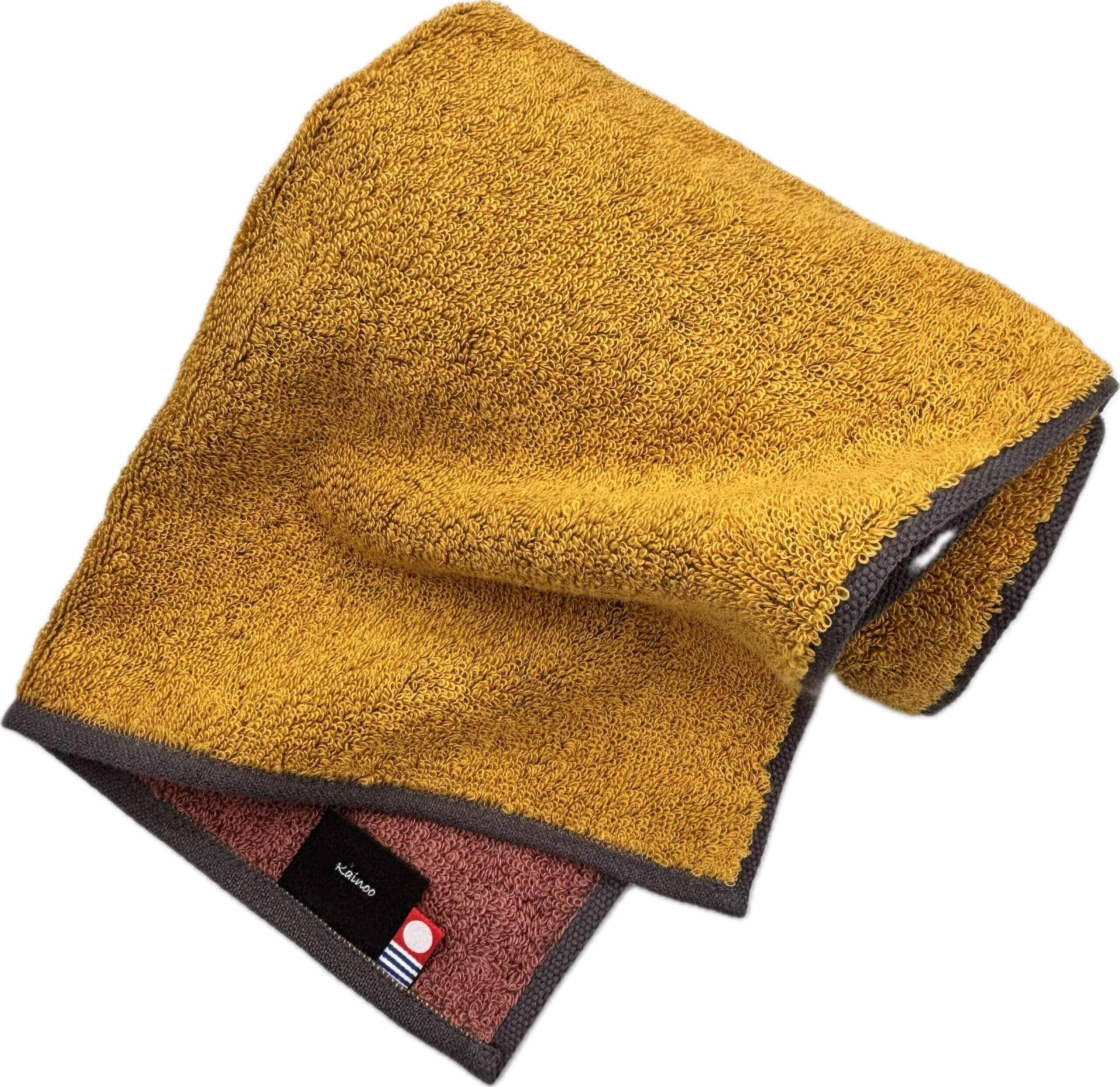 kainoo 今治タオル フェイスタオル 日本の伝統色 34cm×85cm 黄系 狐色×緋褪色 日本製 今治 無地 タオル 優しい肌触り 業務用タオル エステ用タオル キッチンタオル リバーシブル 綿100% コットン100% キャンプ