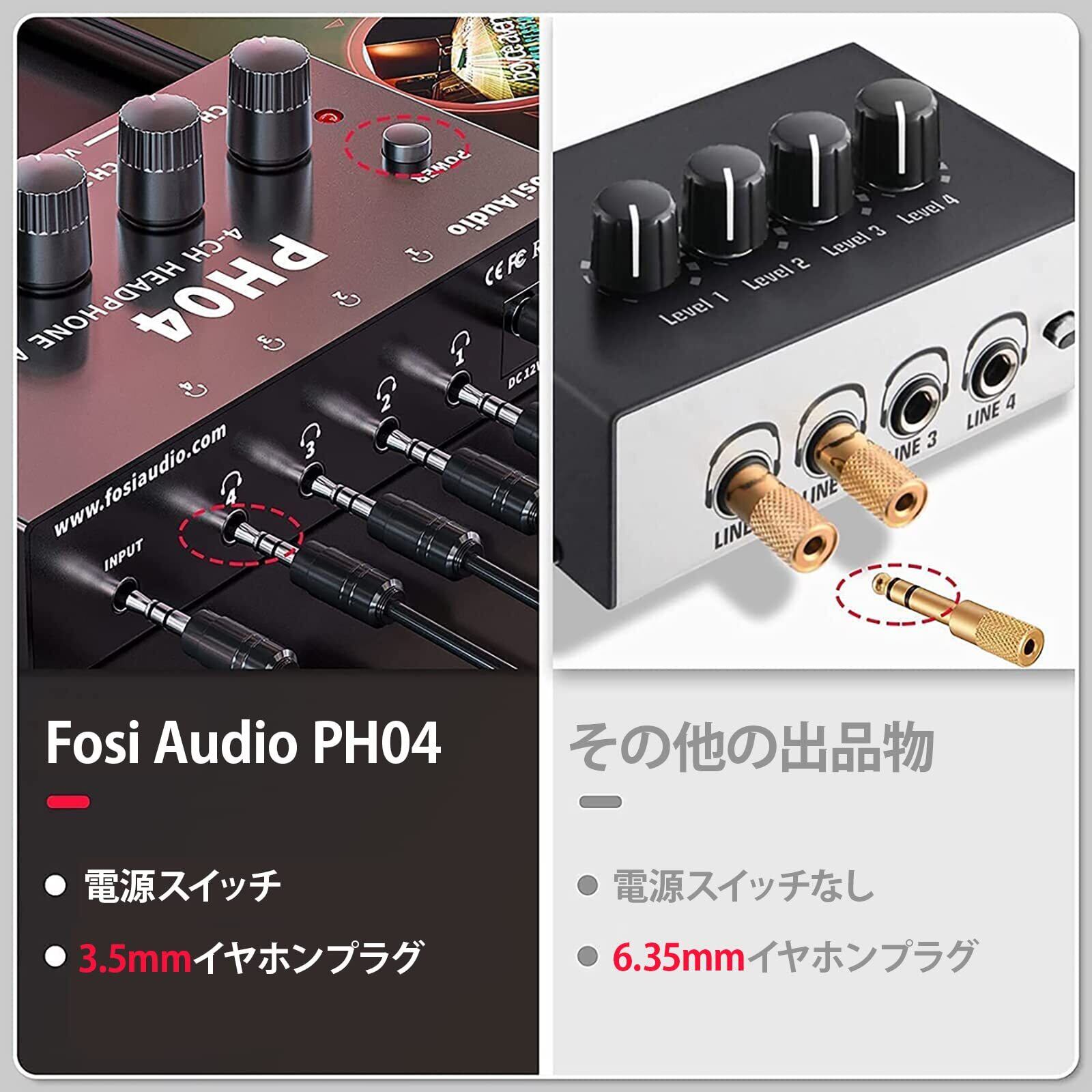 Fosi Audio PH04 4チャンネル ヘッドホンアンプ ステレオオーディオアンプ 金属製 超コンパクト ポータブル ヘッドフォンスプリッター 3.5mmメスAUX分配 黒色 スタジオ/ステージ適用(電源付き)