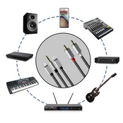 【幅広い互換性】3-in-1 変換ケーメーカーは 1.3m の長さで、入力側はほとんどの携帯電話、タブレット、ノートパソコンや 3.5mm ポートのデバイスに対応しています。出力側はほとんどの電子楽器、ハイエンドヘッドフォン、家庭用シアター、エフェクト、アンプなどのデバイスに対応しています。簡単な「プラグ&プレイ」です。