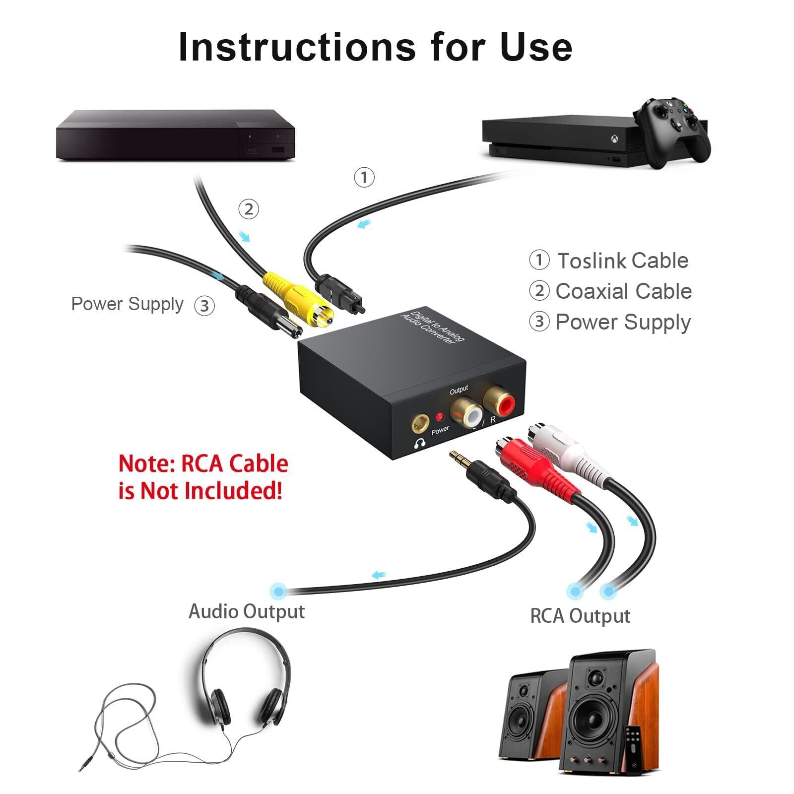 192kHz デジタルオーディオコンバーター DAC 光デジタル/同軸→RCA/3.5mm変換 音調整可能 ノイズ除去機能搭載 PS4/PS5/Xbox/Blu-ray/HDTV対応 光ケーブル&電源アダプター付属