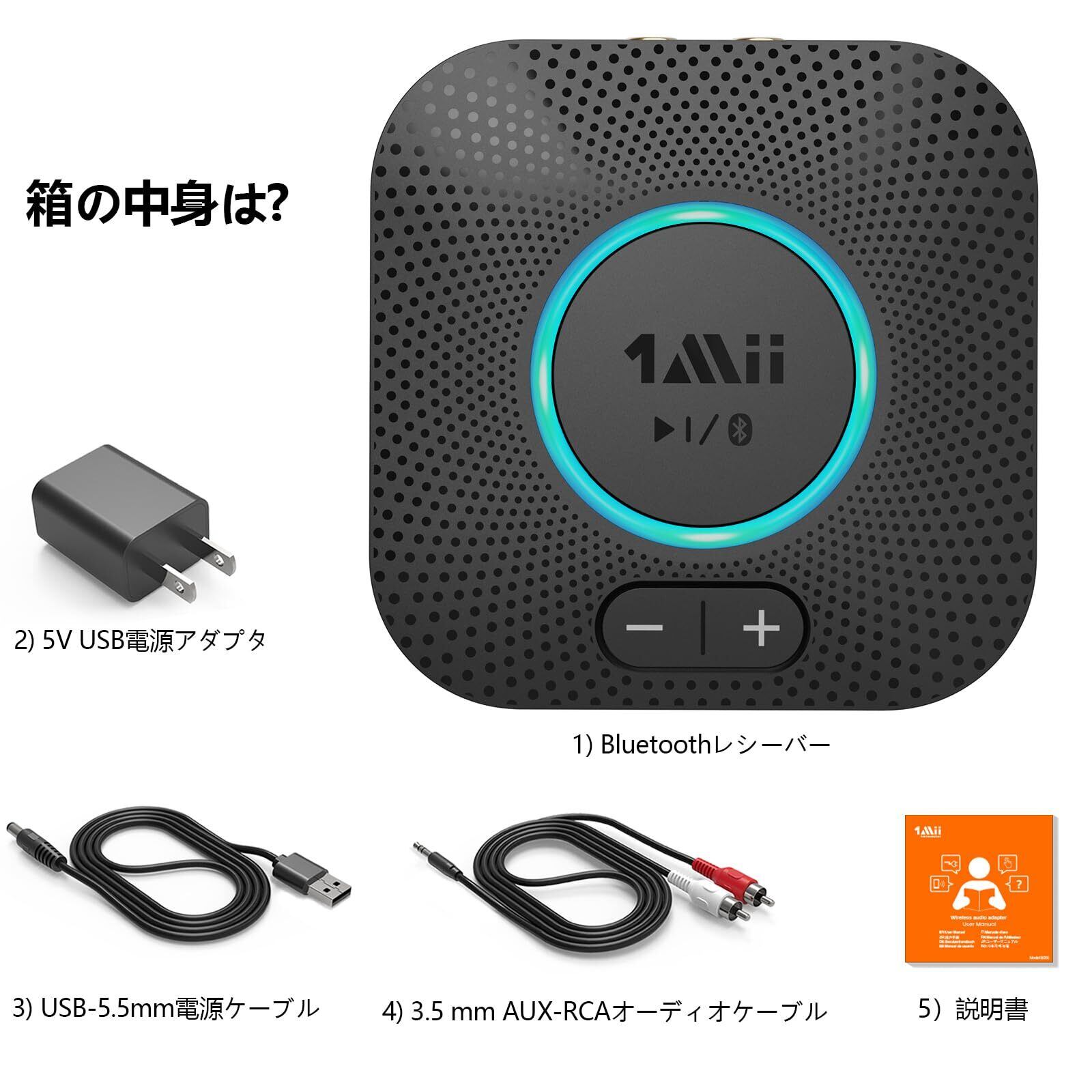 1Mii bluetooth 5.2 レシーバー オーディオ ブルートゥース 受信機 APTX HD aptx LL 低遅延 AAC RCA / 3.5mm AUX 対応 自動接続 音量調整付き 2台同時接続可能 充電不要 超長ワイヤレス受信距離(屋外:35m 屋内:17m) 電波法技適マーク取得済み B06S