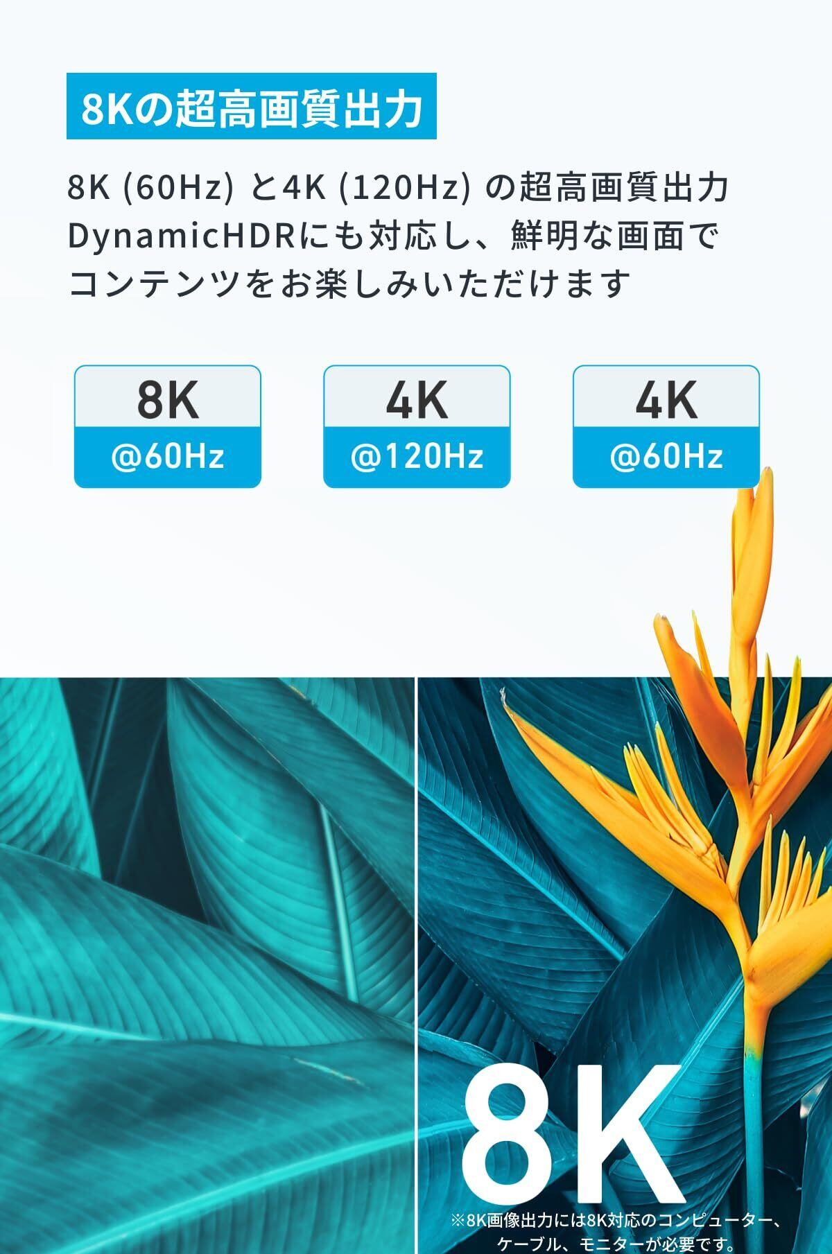 ゲームに最適:HDMI 2.0b / 2.0a / 2.0 / 1.4 / 1.3 / 1.2 / 1.1を含む従来のHDMI規格に加え、HDMI 2.1に対応し、PS5・Xbox Series X / S等の家庭用ゲーム機で、4K (120Hz) の超高画質でコンテンツをお楽しみいただけます。 (※4K (120Hz)での出力には、お使いのディスプレイが4K (120Hz)に対応している必要があります。)