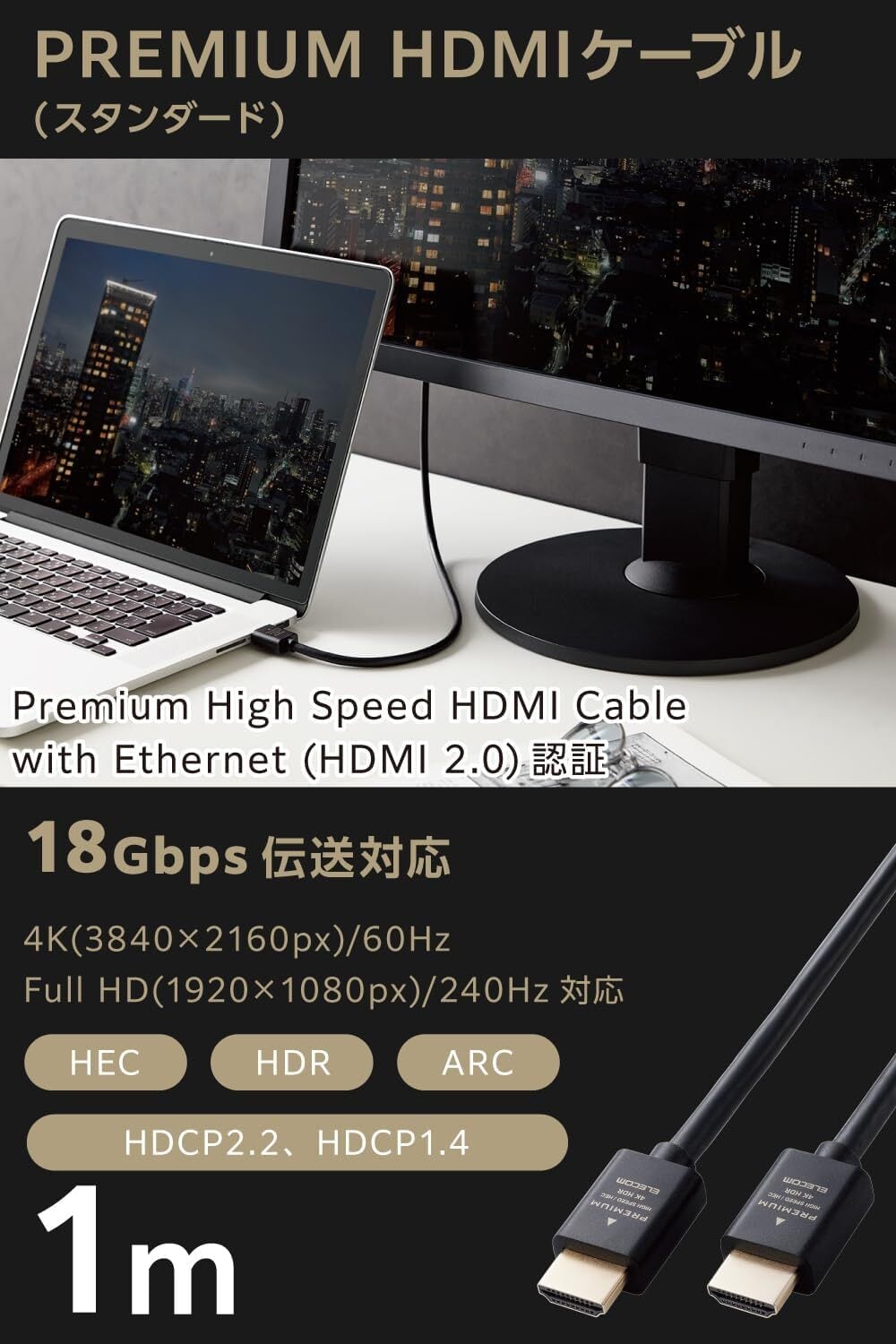 【在庫処分】エレコム HDMI ケーブル 1m プレミアム 4K2K(60Hz) 【Premium HDMI(R) Cable規格認証済み】 18Gbps テレビ・パソコン・ゲーム機などに ARC 黒 ECDH-HDP10BK | jake