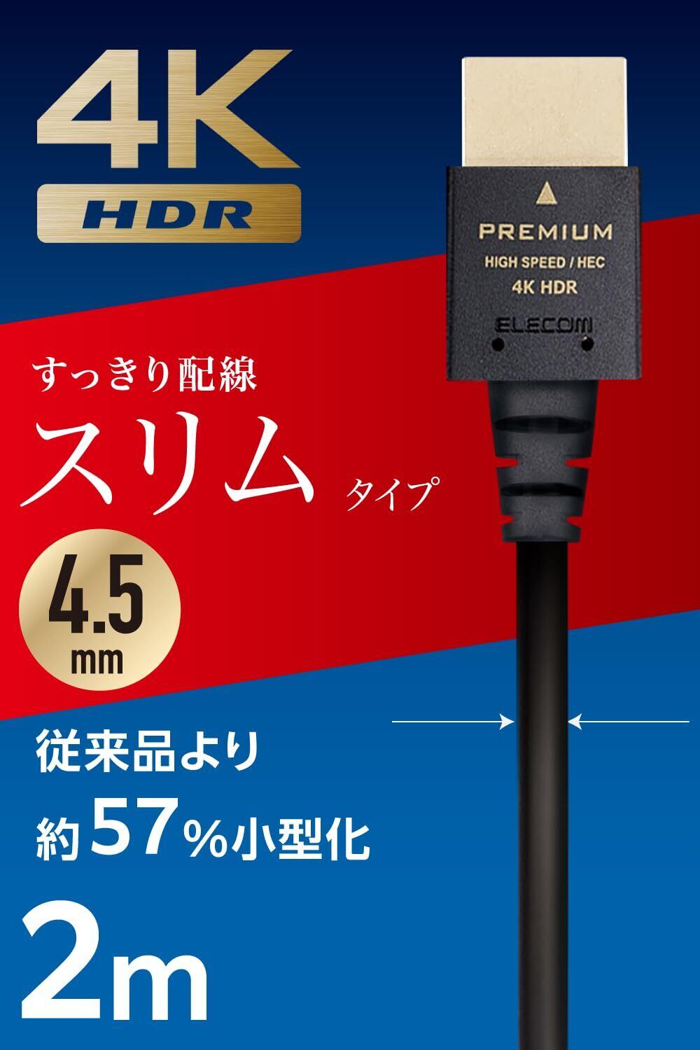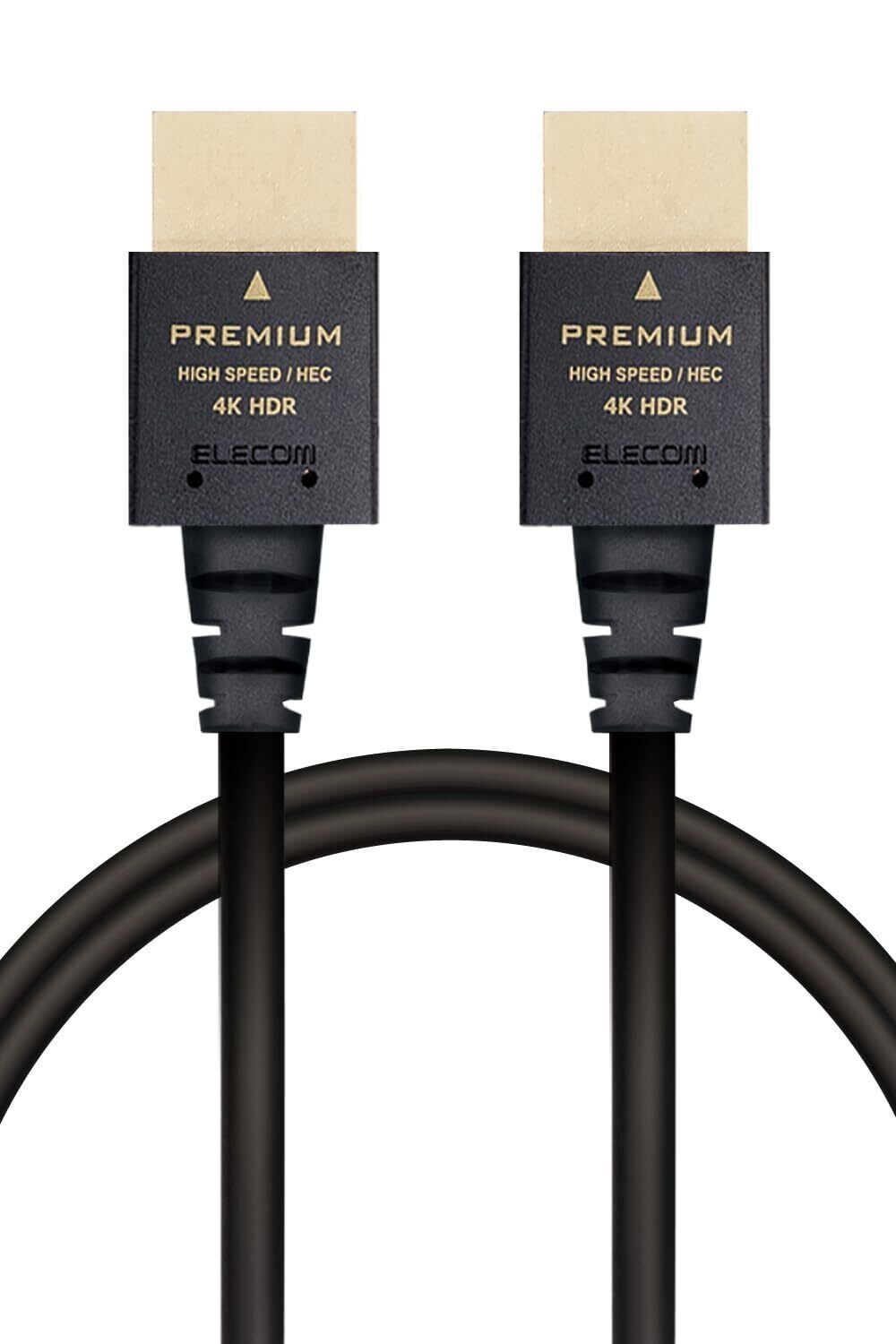 エレコム HDMI ケーブル 2m 細い プレミアム 4K2K(60Hz) 【Premium HDMI(R) Cable規格認証済み】 18Gbps テレビ・パソコン・ゲーム機などに eARC 黒 ECDH-HDPES20BK