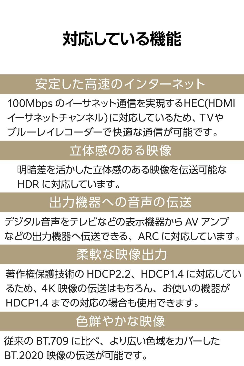 100Mbpsのイーサネット通信を実現する、HEC(HDMIイーサネットチャンネル)に対応しています。