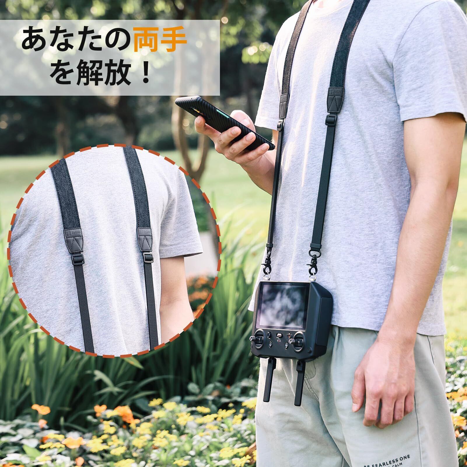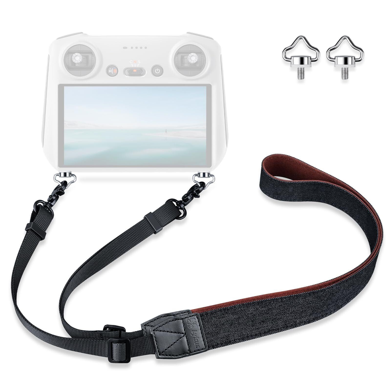 Lykus DJI RC/DJI RC 2/RC Pro 用ランヤード/ネックストラップ/リーシュ ブラックストラップ 王冠型ネジ DJI Mini 4 Pro、Mini 3/Pro、Mavic 3/Classic/Pro、Air 3S/Air 3、DJI Neo、DJI Flip に適用